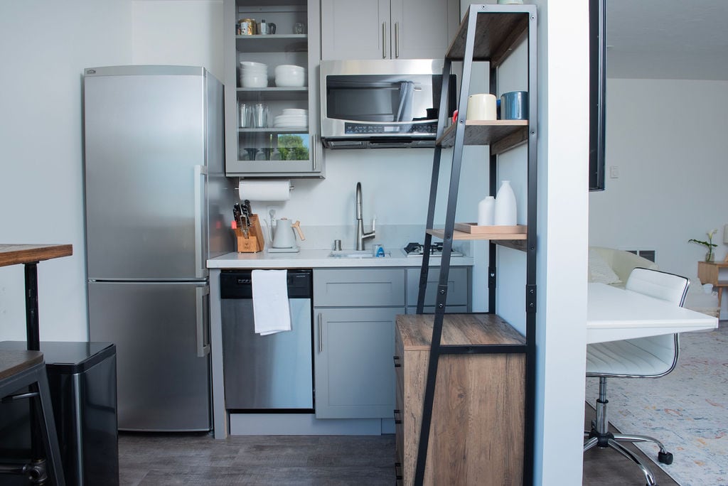 Discover the open flow of this homey artsy private studio. Enjoy floor-to-ceiling valley views. Curl up in a daylight flooded reading nook. Perched at the top of the historic Dipsea Steps, the apartment is a short walk from Mill Valley’s enchanting boutiques, restaurants, and coffee shops. Jump on trails and hike the Headlands, Muir Woods, and Stinson Beach. The studio has a kitchenette with a mini fridge, Nespresso machine and a microwave. Please note, it’s definitely not for cooking meals.