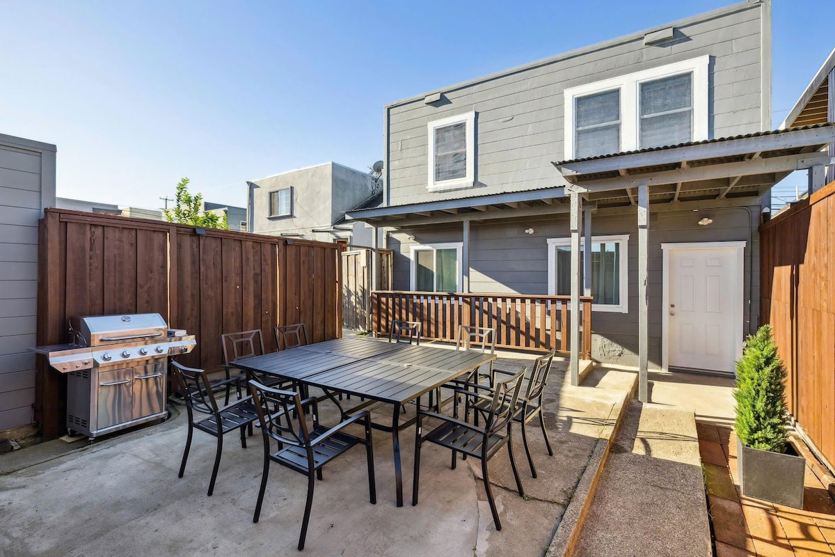 Centrally located & newly renovated! Highlights: ★ 15 mins to Bill Graham Civic Auditorium ★ 17 mins to City Hall & Civic Center ★ 18 mins to SOMA & Moscone Center ★ 20 mins to Union Square & Chase Center ★ 20 mins to Oracle Park ★ 15 mins to SFO by car, 20 mins by BART This spacious home features: ★ A cozy backyard retreat with comfortable seating ★ 3 bedrooms and 2 modern bathrooms ★ Fully equipped kitchen and dining area perfect for group meals ★ Private garage with remote opener included