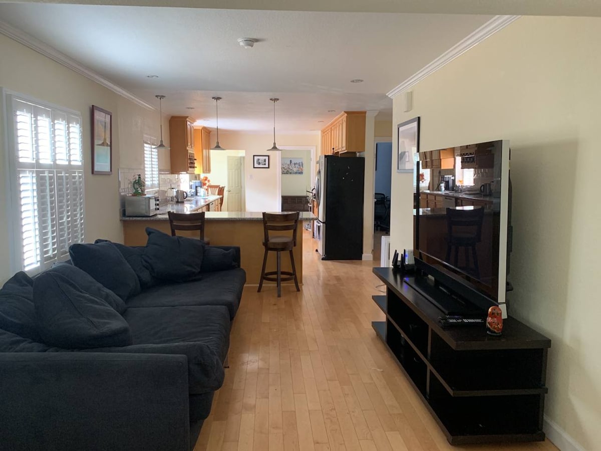 This listing is a modern and cozy home with 2 spacious bedrooms and 1.5 bathrooms on the 2nd floor. Enjoy the fully functional kitchen and tons of space to hang out in the living and dining room. Natural light from the windows and skylights. Furnished with custom art for people of all ages to enjoy. Located on a quiet street. Street parking only but it is free. Street parking does fill up later in the day. Only 15 minute drive away from SFO and 5 minute drive to Cow Palace.