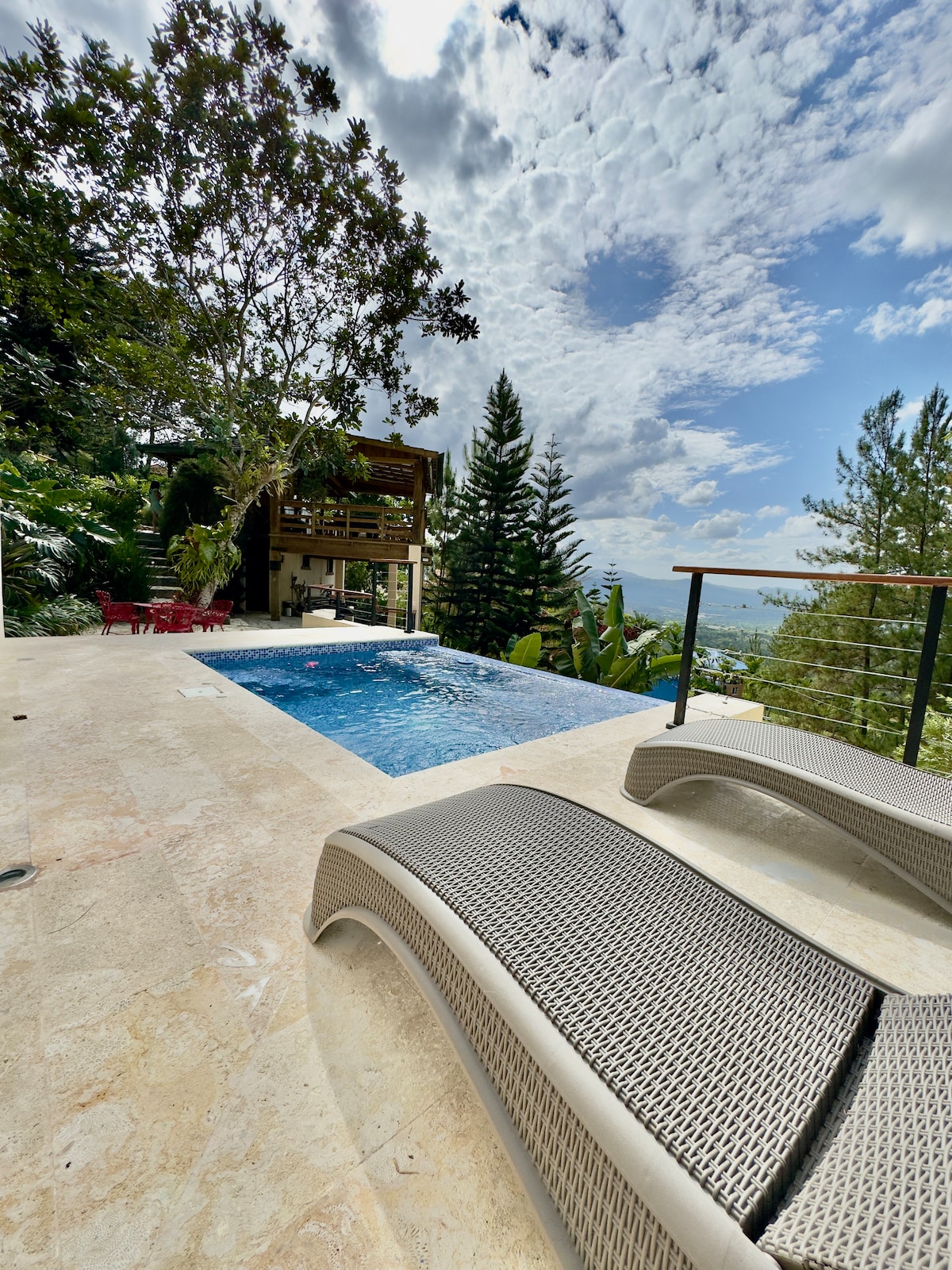 Este lugar es único tiene su propio estilo moderno cocina español, jacuzzi al aire libres ,y piscina común parqueo,vista a 2 montaña la cordillera central ,y la cordillera septentrional.