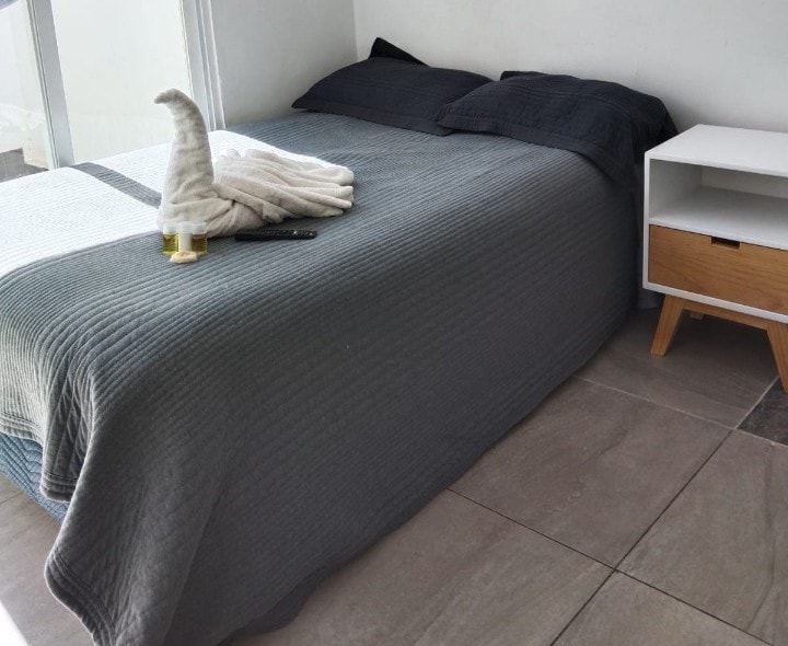 Departamento completo ideal para disfrutar tu estancia en Qro. Habitación muy amplia, cuenta con mini split, TV, clóset, 2 silloncitos y espejo de cuerpo completo. La cocina está equipada con: parrilla eléctrica, microondas, licuadora, cafetera, refrigerador, vajilla para 4 personas, y accesorios básicos para uso de la cocina. 1 baño completo (se utilizan paneles solares para el agua caliente), incluye: jabón para manos, shampoo, jabón corporal, toallas, secadora p/cabello y plancha p/ropa