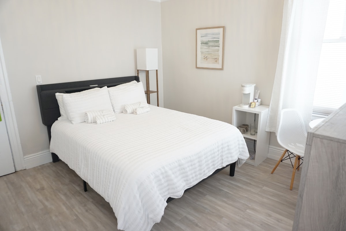Your own space/ no shared rooms, easy access ground floor and convenient location. This unique place has a fresh style all its own. Formally a secret famous recording studio for pop-rock bands, it was known as “The Hearst”. World famous records by the Killers were made here, “Hot fuss” and “Sawdust”. The first room, (now bedroom) was the control room with recording equipment and the second room (now tub room) was where the musicians played. Welcome pets for a fee if $35/per pet -per night.