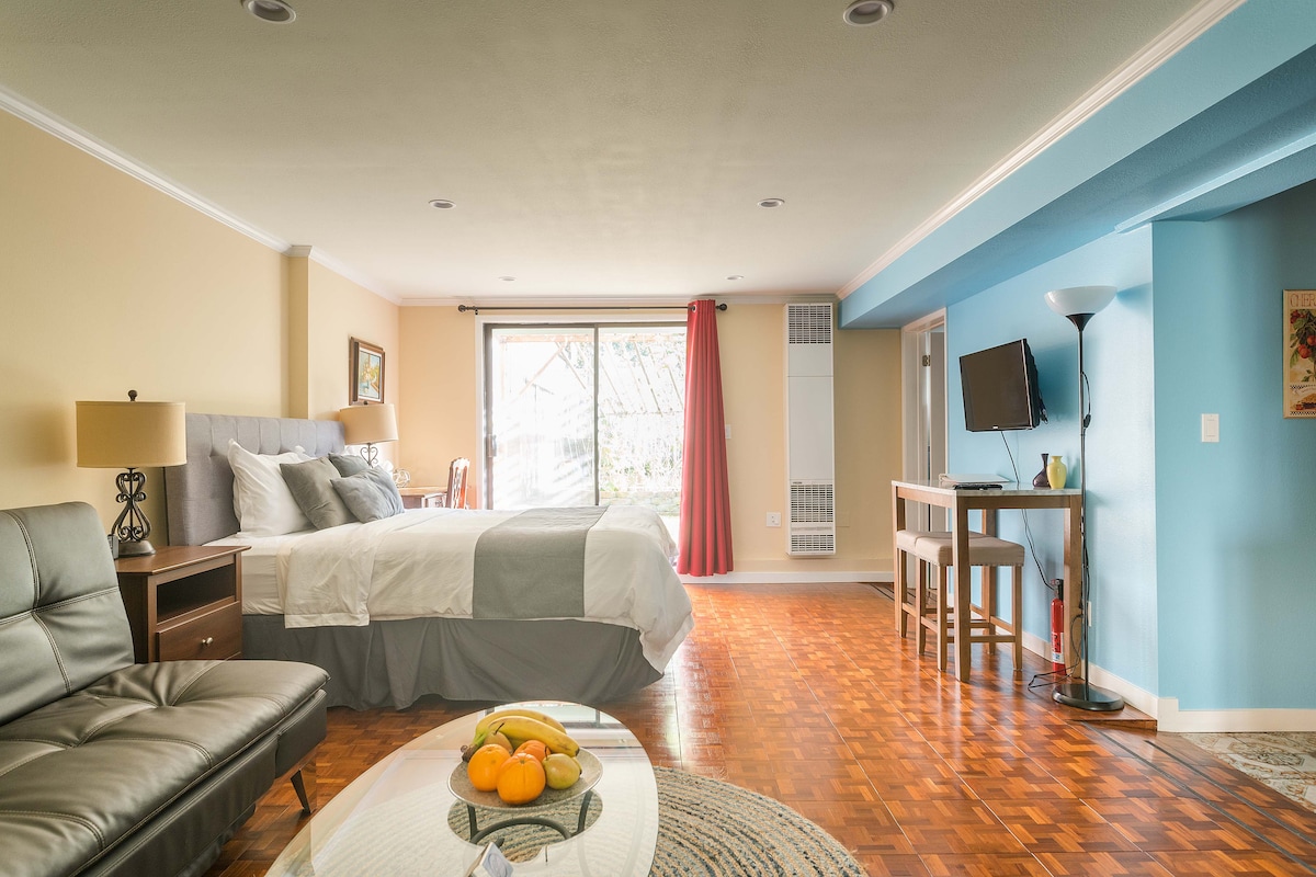 Unwind in our newly renovated, stylish studio - your own private retreat with no shared spaces. Enjoy a plush king bed, a fully equipped kitchen, and easy free street parking. Located in the friendly Sunset District, just a mile from Ocean Beach and Golden Gate Park, it’s ideal for couples, small families, festival-goers, and anyone visiting friends or family in SF or the Valley.