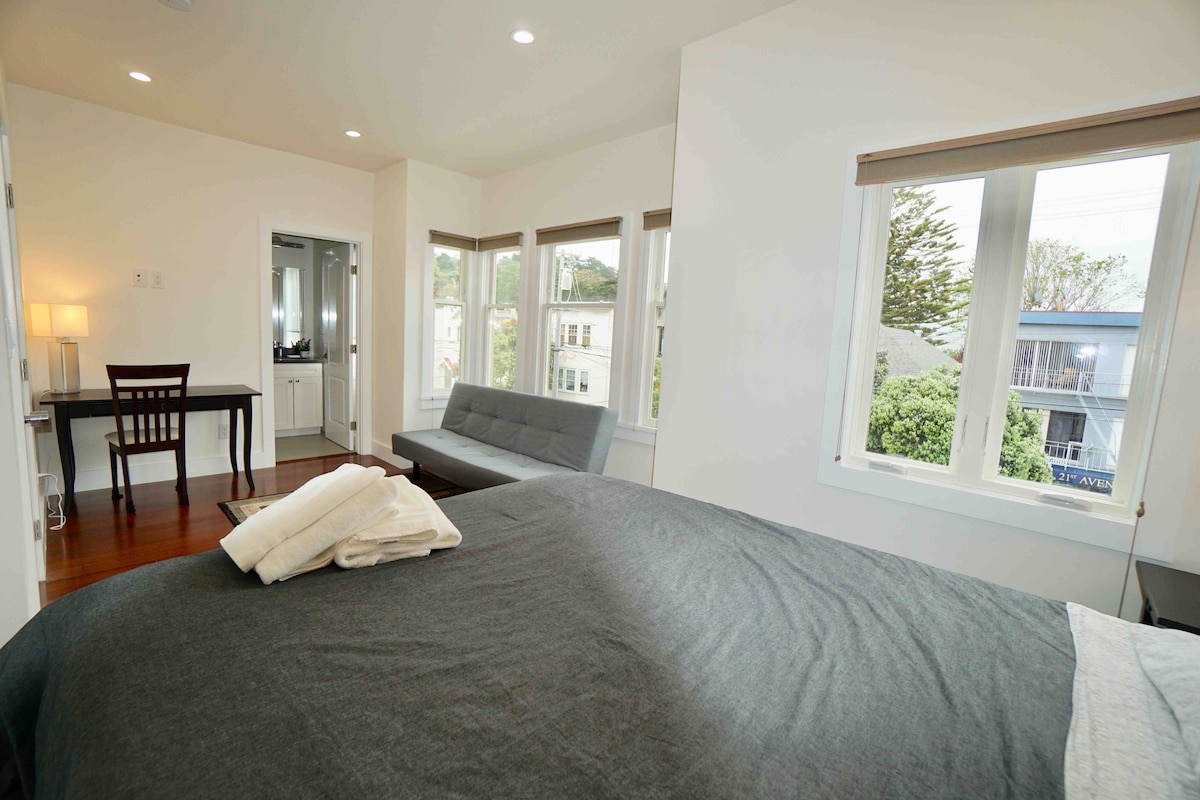 Private entrance, private living area, and private bathroom! This is a master suite on the ground floor of a 3 bedroom single-family house. Newly renovated hotel styled master bedroom with bathroom. A relaxing space located in outer sunset. Easy street parking. Staged with awesome retro-looking appliances. Walking distance to Ocean Beach. *If you book last minute or really late into the night, you can still check in. It’s self check in ;) *