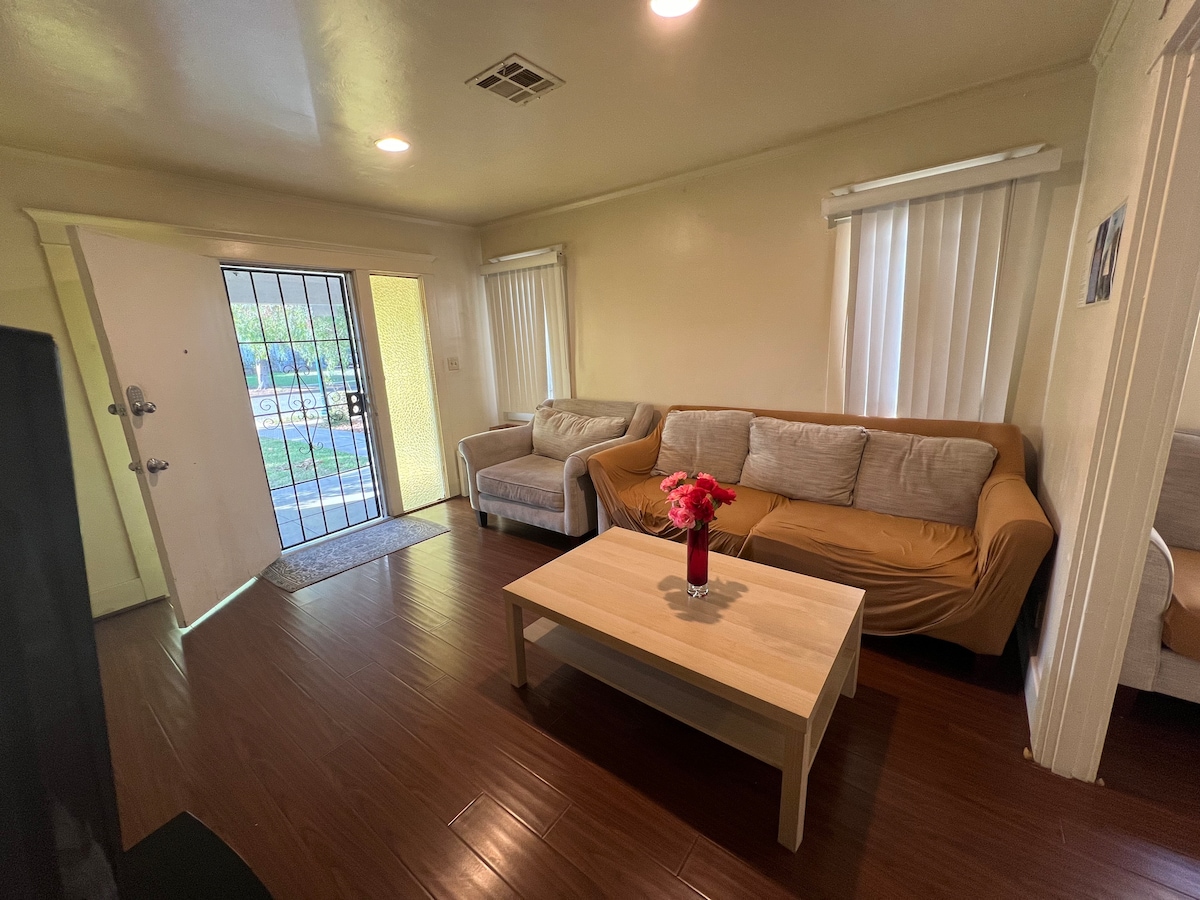 Back house Independent access ,2 Bedroom. 2 Baths. Kitchen. Fully furnished. nice big backyard with own private entrance Perfect location to all major hotspots of Los Angeles. [Estimated distances: LAX/Santa Monica 30mi, DTLA 12mi, and Disneyland 35mi. Provided space is attached to a main house that is occupied. Parking space is available by straight line .(up to 2 vehicles).