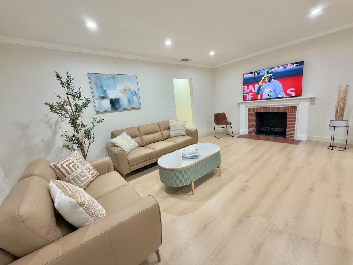 The ultimate California getaway awaits at this lovely 3-Bedroom 2-Bathroom single story Villa in Hacienda Heights! Quiet hillside neighborhood but WALK distance to EVERYTHING, such as shopping mall, supermarkets, regional park and high rated restaurants! Tesla Supercharger and Drive Thru Starbucks within half mile. 30 min. driving to Disneyland & Knott's Berry Farm, local or FWY. Each room is bright and airy, brand new 65-inch Smart TV in the high ceiling living room.