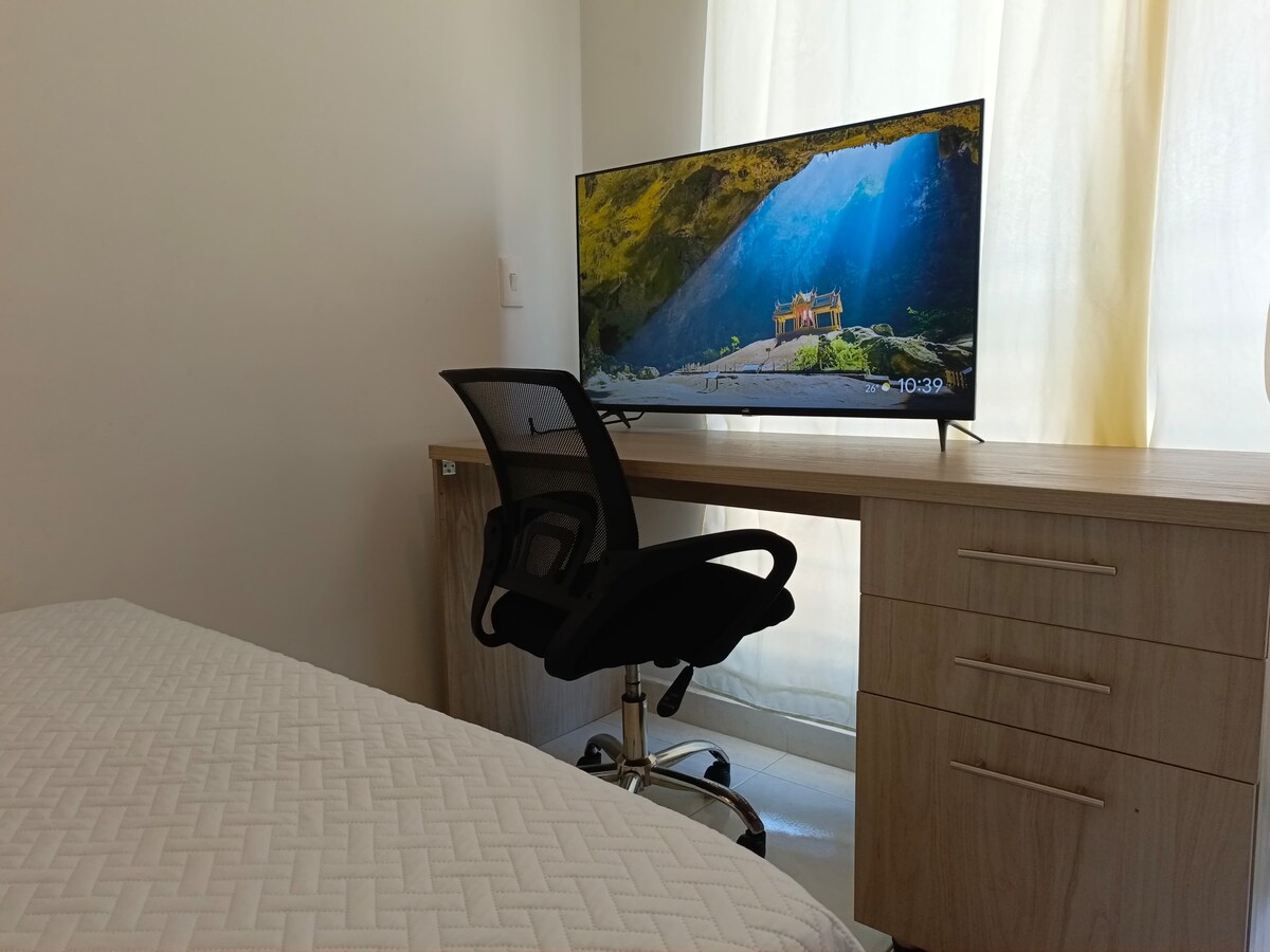 Descubre la calma y el encanto de San Gil. Disfruta un espacio acogedor, perfecto para descansar y desconectarte. Despierta en un ambiente tranquilo, prepara tu desayuno favorito y explora la belleza natural de la región. Al caer la tarde, proyecta una película y relájate. Ubicado cerca del hospital, a 15 min del centro, con supermercados, panaderías y restaurantes a pocos pasos. Ideal para parejas o viajeros que buscan confort y privacidad. ¡Te esperamos..