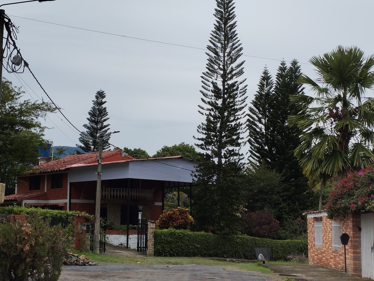 Hermosa casa de bahareque ubicada a 5 km del pueblo, de media hectárea y arboles frutales para el consumo. Cuenta con dos casas, en una encontraras el cuarto principal con su hamaca y en la otra la cocina. El baño es al aire libre lo que hace la experiencia única. Vista hacia el pueblo, dotado sin TV, especial para compartir en tranquilidad y desconectar. Importante: Solo hay una cama, y otra inflable sencilla. Apto para llegar en mototaxi, 4x4 o un carro alto fuerte, debido a que es campo.
