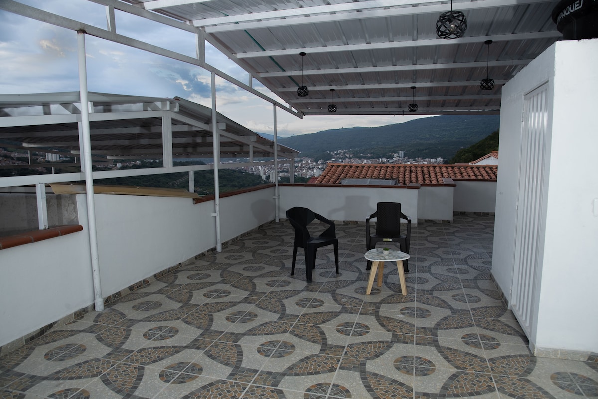 Come to San Gil, enjoy this beautiful apartment 12 minutes walk from the central park of the town Apartment with excellent view. Capacity for 6 people sleeping comfortably; 2 in a queen bed, 2 in a double bed, 1 in a single bed and 1 in a semidouble sofa bed. Features: •WIFI • 20 m² private terrace, perfect for relaxing • Private garage with electric gate • Fully equipped kitchen • Washing machine • Balcony • 2 bathrooms • Marble breakfast bar • Netflix account for your entertainment