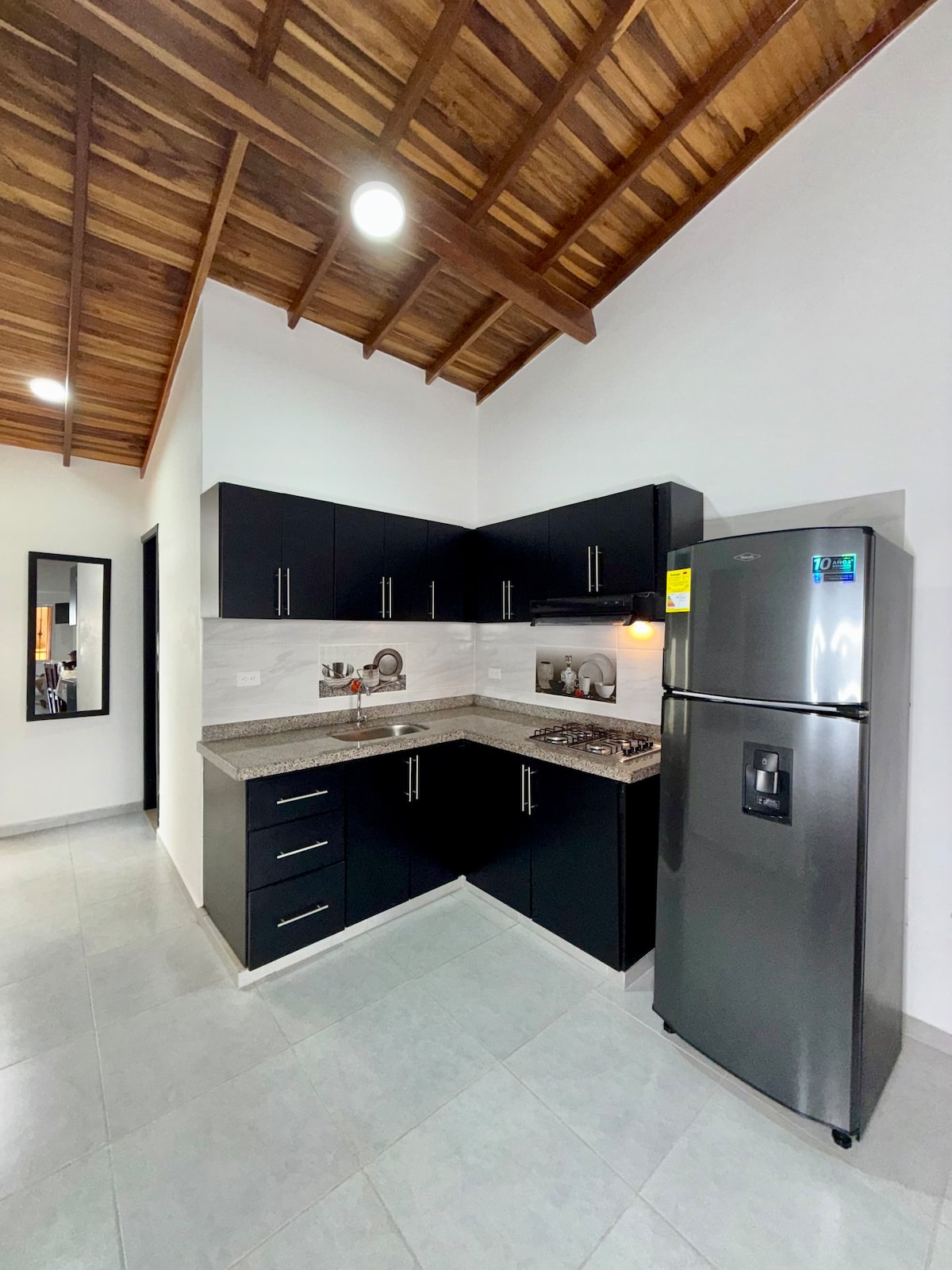 Disfruta de la sencillez de este alojamiento. Tendrás todo el apartamento para ti, donde encontrarás: 1 habitación, 1 baño dentro de la habitación, cocina, barra, comedor, sala, un video beam para proyectar películas, conexión wifi y parqueadero para moto. El apartamento está ubicado dentro de San Gil muy cerca al Hospital en el Barrio Pablo Vl a 15min caminando del centro de la ciudad. Cerca al apartamento encontrarás supermercados, restaurantes, droguerías, panaderías, etc. Te esperamos.