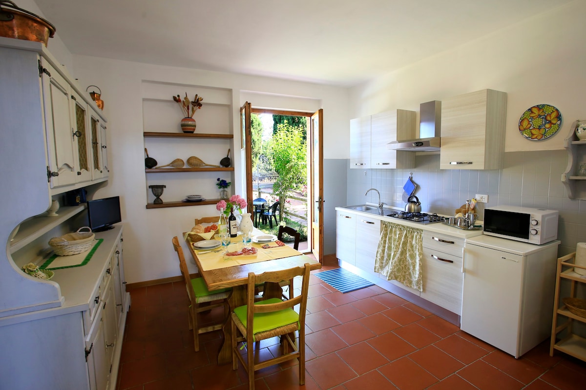 Podere Vergianoni è un antica e autentica casa colonica risalente al 1600 situata nelle splendide colline del Chianti in Toscana . L'appartamento è arredato in perfetto stile tradizionale locale dell'antica Toscana : antiche travi in legno, pavimenti in cotto e arredamenti unici. Nel grande cortile esterno troverete a vostra disposizione una grande piscina con terrazza panoramica che si affaccia su una valle con vista mozzafiato su vigneti e oliveti dove godersi tramonti spettacolari.