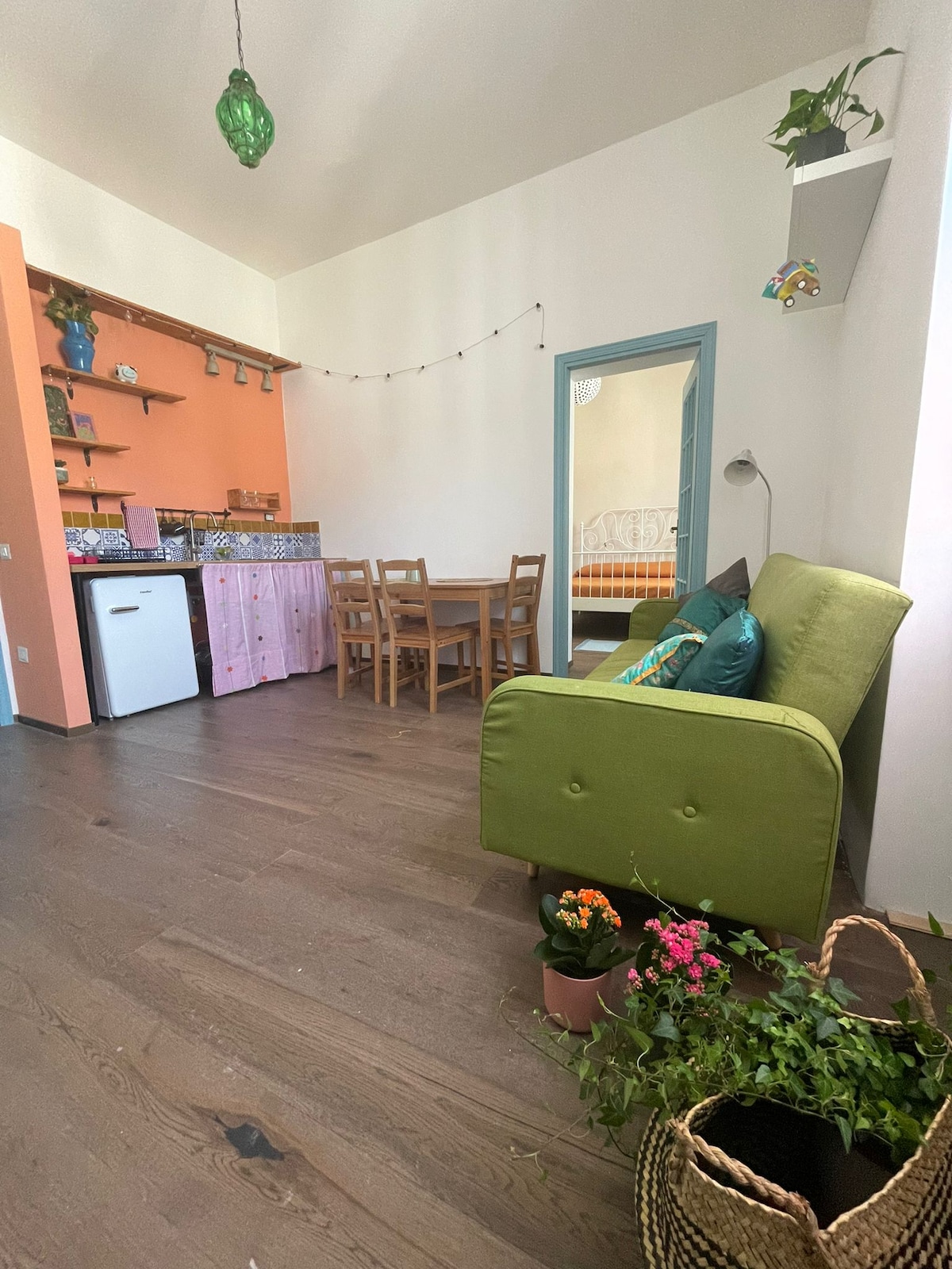 Grazioso monolocale, nel cuore di Napoli, con una bellissima luce e una vista suggestiva sui tetti della città, in un tipico palazzo molto popolare e caratteristico. Rifugio intimo e accogliente per partire alla scoperta di Napoli e dintorni, rievocare le suggestione della giornata e respirare l'aria della città, ascoltare le voci della strada e le grida dei gabbiani. Ideale per una fuga romantica e per poeti solitari, per chiunque voglia scoprire l'anima e la poesia di Napoli.