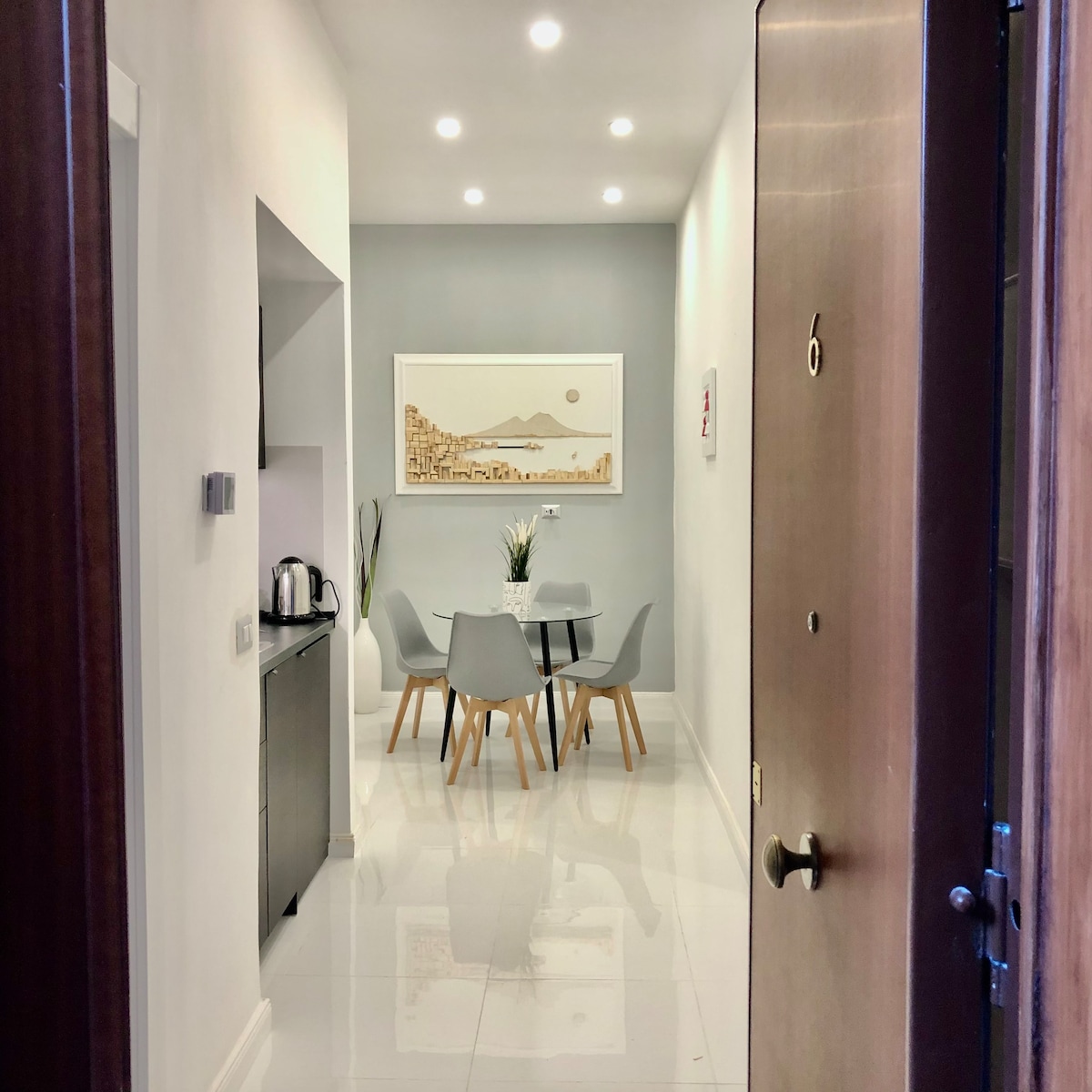 Luxury apartment: a combination of classic elegance and modernity, just renovated with JACUZZI and PRIVATE ROOFTOP of 90mq where you can admire the volcano Vesuvius. Located in a historical building on the 3rd floor without elevator in the heart of the old town, you can reach everything by walking. WiFi, PrimeVideo, Nespresso and luggage storage for FREE Points of interest • 2 min Duomo • 4 min Underground Naples • 6 min Metro L1 & L2 • 5 min Train Station • 10 min Harbour