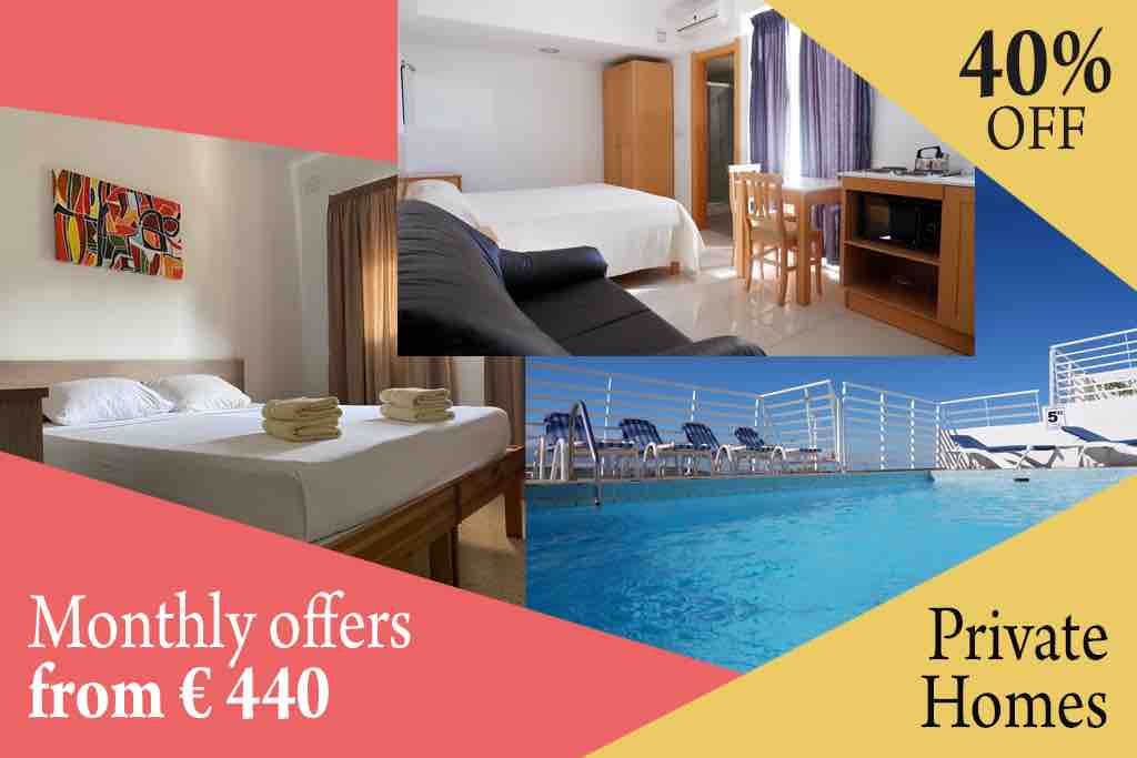 This apartment is bang in the center of Mellieħa forming part of a block of apartments. The apartment is very bright and airy, it includes 2 bedrooms and 2 bathrooms, fully equipped kitchen, living space, Cable TV, washing machine and AC's. It also has a nice balcony and a spacious terrace with distant sea views for outside dining. This apartment has been completely refurbished in March 2023. The pool is open from 1st April to 31st October.