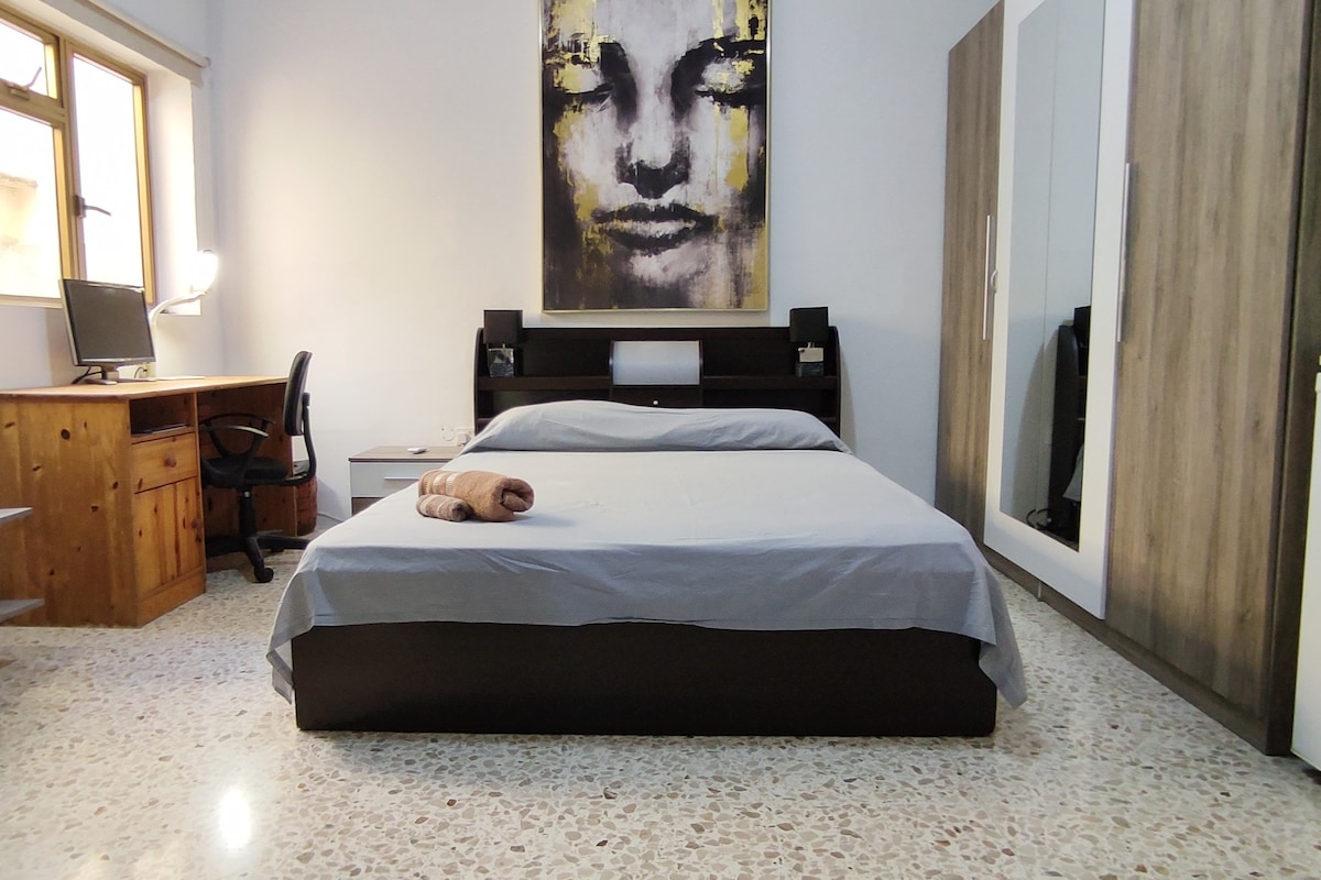 Apartment in Detached Villa, one large Bedroom with balcony, bathroom ensuite, Kitchenette, use of roof, relax and enjoy views. Basically top floor to yourselve some areas are shared with us. A few minutes away from Spinola Bay, walking down the Spinola Bay is in the center of Paceville and St. Julians, Balluta Bay to Sliema. Spinola Bay is full of Coffee shops, restaurants loads of entertainment. Up the road from our house (5 min walk) Mini Market further up Lidl Supermarkets