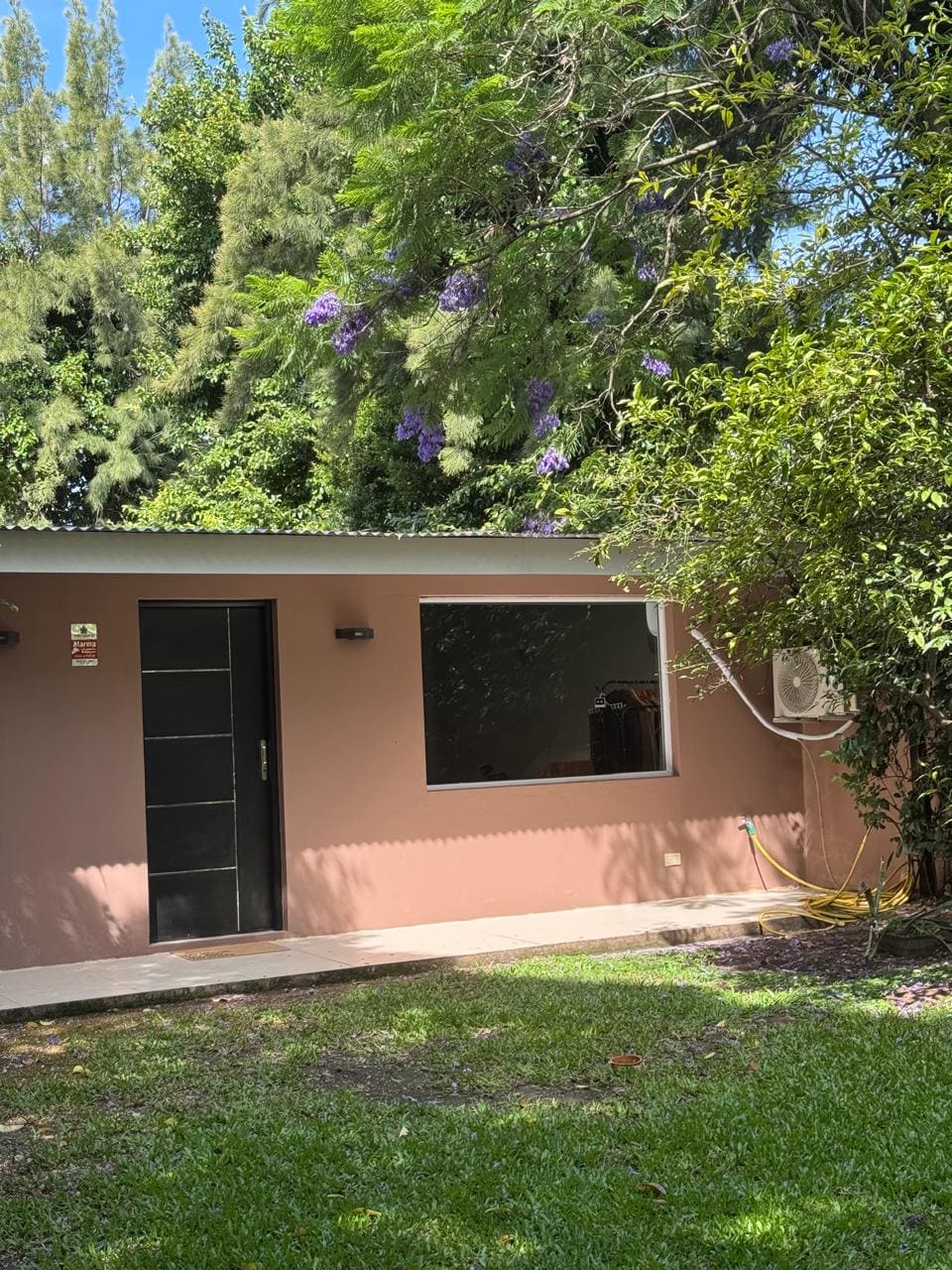 Casa minimalista en planta alta, rodeada de verde, con terraza, gran balcón y vista al hípico. Funciona como 3er piso. Loft luminoso, cama super king, vidrios dobles, losa radiante, aire acond y cortinas blackout en todas las ventanas. Entrada independiente, buen aislamiento. Mi taller está en planta baja con acceso totalmente separado. Ideal para 1 o 2 personas tranquilas que buscan descanso cerca del río y gastronomía, a 30 min de CABA y Tigre. No apta para eventos/producciones.