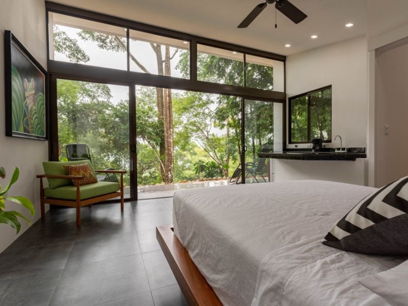 Drift off to sleep, and awaken to the gentle babble of a nearby rainforest creek, distant ocean waves, and tropical birds in resplendent tree tops. This modern but cozy 1bd/1ba comes with all kitchen essentials, BBQ, and a luxury bath featuring jungle views and double shower heads. Step outside and into the infinity-edge pool with customizable lighting and ocean views. Monkeys, sloths, toucans, coati’s, and waterfalls abound. Surround yourself with serene, vibrant, natural beauty.