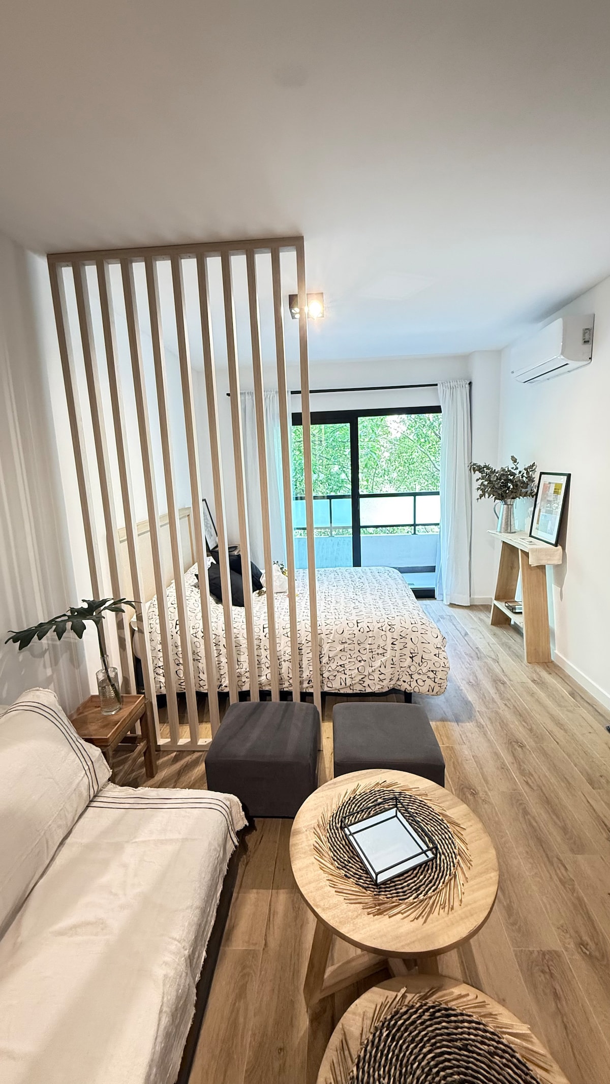 Hermoso departamento de 2 amb en dos plantas San Isidro Luminoso, cómodo, cálidamente decorado y ambientado. Living comedor con vista arbolada a un ventanal de doble altura Cocina integrada separada con barra desayunadora Toilette Acogedor balcón Habitación con cama de 2 plazas estilo nórdico Tv 45" con netflix y cable Cama de 1 plaza para un tercer huésped o como espacio de lectura y relax Baño completo con bañera Piscina con deck wifi