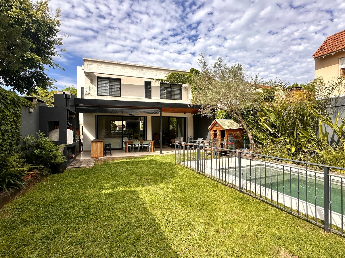 Disfruta del verano en un entorno verde y seguro! En San Isidro, excelente acceso y conexión con la ciudad. Casa moderna y súper luminosa. El hall da acceso a un living comedor con grandes ventanales al jardín. Toilette. Cocina integrada con isla, muy bien equipada. Lavadero separado. En planta alta 3 dormitorios y 2 baños completos. En el exterior una lindisima galería con mesa para 8/10 personas, living, parrilla, horno de barro y una linda pileta con playa húmeda ideal para los niños.