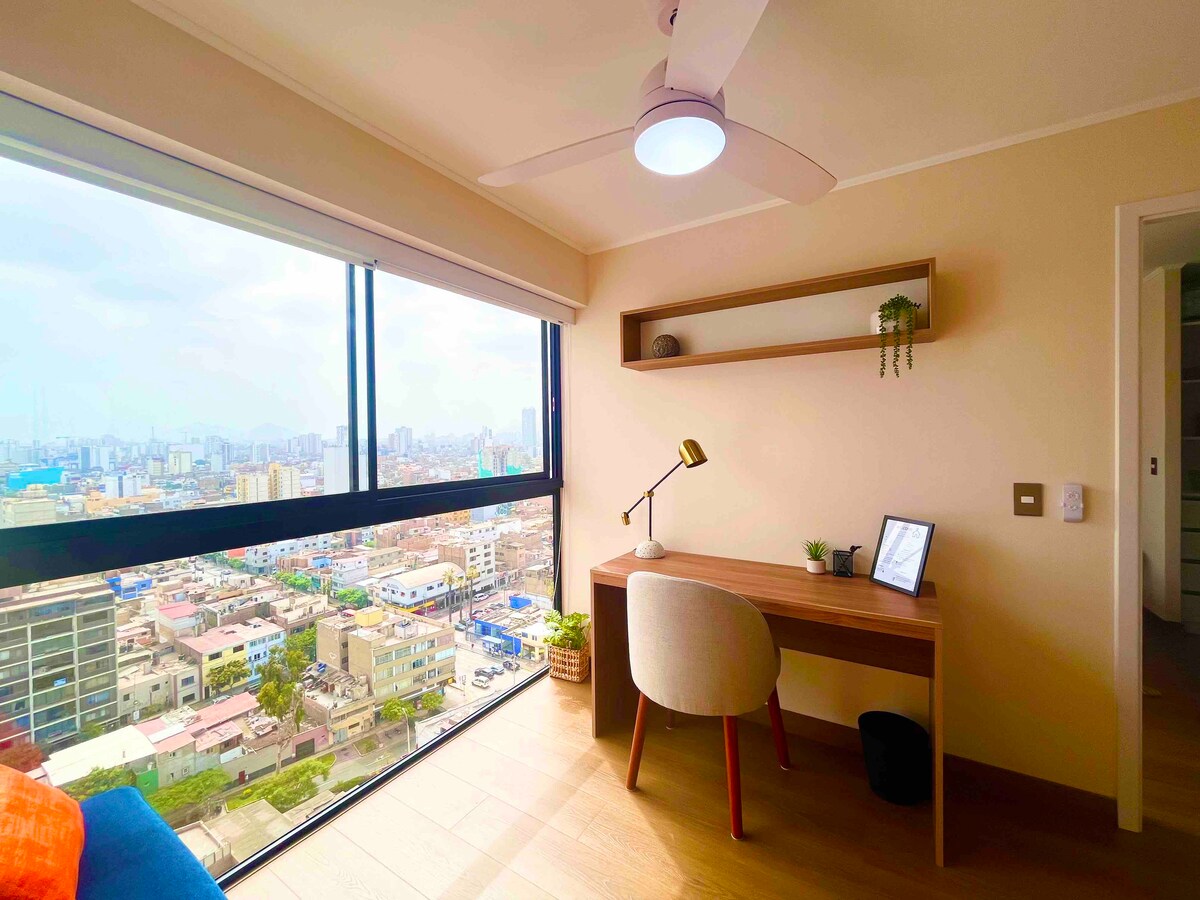 Si buscas sentirte como en casa, este nuevo y acogedor apartamento de 45m² en San Isidro es perfecto para ti. Con un diseño moderno, cama cómoda, cocina americana equipada, sala y TV, todo está listo para tu estadía. Disfruta de la vista increíble y la tranquilidad de uno de los distritos más seguros de Lima. Rodeado de todo lo necesario y con acceso fácil a Miraflores y al Centro de Lima. Somos superanfitriones y cuidamos cada detalle para que tu experiencia sea única.