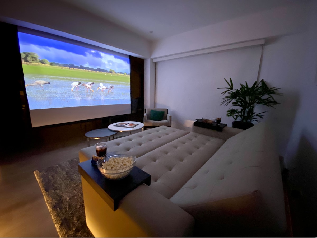 Brand-new, spacious and fully equipped apartment just 350 m from the Miraflores oceanfront. Perfect for relaxing, working, or enjoying a home cinema experience with its HD projector and automatic screen. Features 2 bedrooms (master with queen bed and 4K Smart TV), a cozy living room with queen sofa bed, and a balcony with side ocean view. 100MB high-speed WiFi. We have parking. Top location near Larcomar, cafes, museums and restaurants.