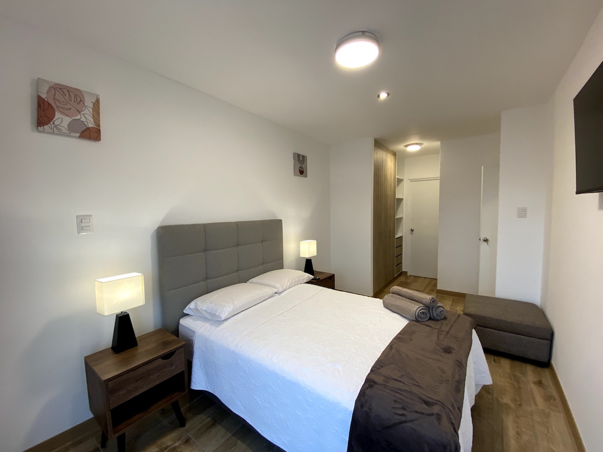 Siéntete como en casa! Departamento céntrico ubicado en San Isidro cerca a todos los lugares turísticos como: Miraflores, Larcomar, Centro de Lima entre otros. Todo lo tenemos cerca! Bancos, restaurantes, supermercados, Centros Comerciales, Clìnicas, entre otros. Tenemos una hermosa vista a San Isidro y buena iluminación. Gracias a sus comentarios, somos los únicos en tener ventanas antiruido en la habitación! despreocúpate del ruido de la ciudad y ten una noche placentera ✨