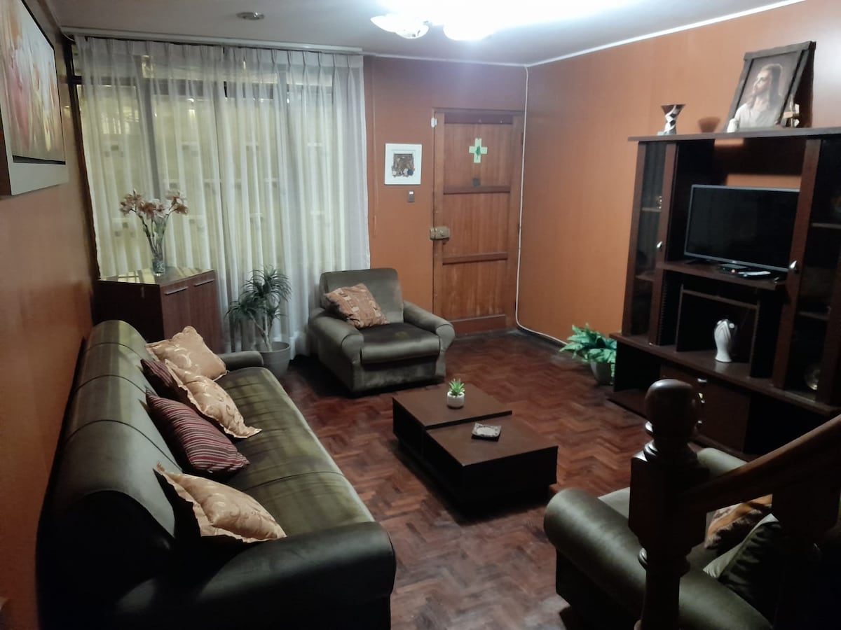 Habitación privada amoblada, de 2 ambientes integrados ( sala de estar - dormitorio ), con baño exterior privado , servicio wifi y Tv por cable. Dormitorio con cama vestida y accesorios ( mesa de noche, cómoda y espejo ). Con ventana hacia el exterior y una mesa escritorio cercana para laptop con silla. Expendio de toalla, jabón y papel higiénico. Barrio tranquilo, con acceso a varias rutas de transporte y áreas de comercio próximas. Acceso externo por escalera de caracol