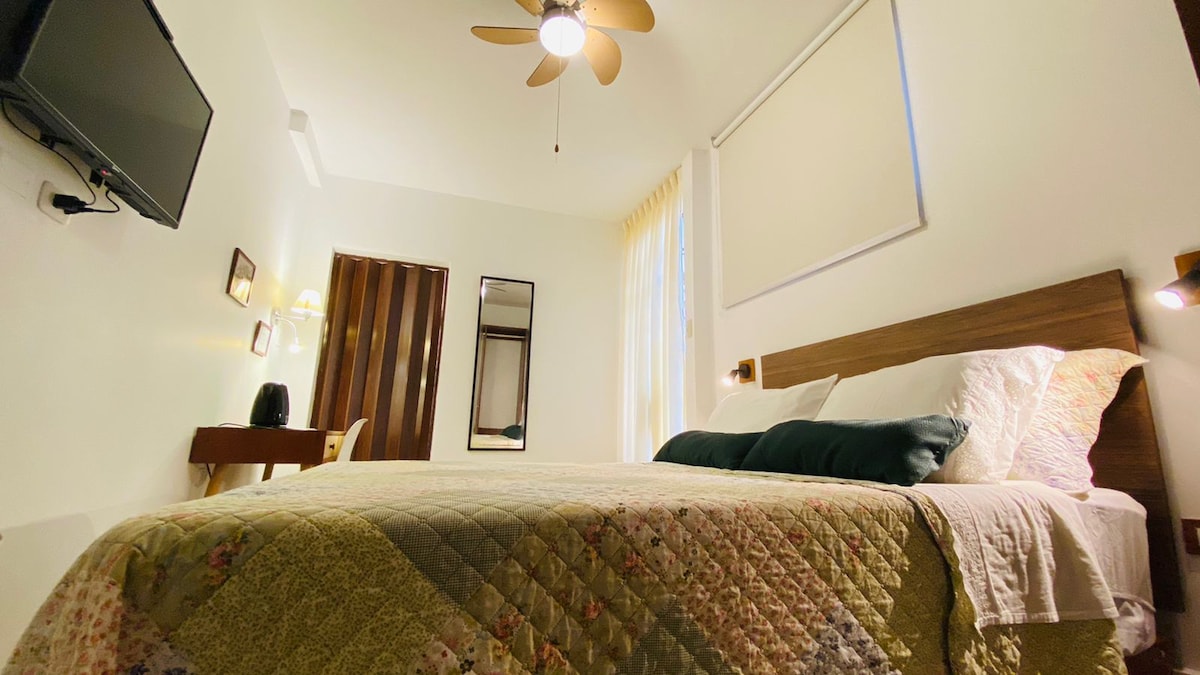 El Mini/departamento es confortable para 1 huésped, cama dos plazas/ matrimonial , amplio closet para estancias largas, un escritorio para trabajar y un televisor. Un Kitchenette con una cocina eléctrica de una hornilla, una mesa abatible con 2 sillas, hervidor eléctrico, un frio- bar, licuadora personal, microondas, un mini grill y menaje. Un baño amplio con ducha eléctrica. El lugar es seguro y tranquilo . La entrada es independiente y se ubica en el 2do. piso.