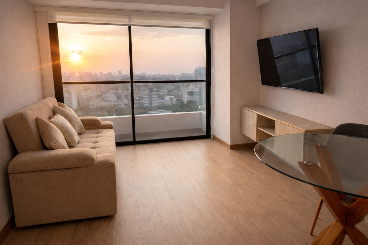 Located in the heart of the Miraflores neighborhood, this beautiful luxury 2BR apartment features a premium queen-size bed, a full-size bed, and a sofa bed with premium 100% Pima-cotton bedding. It's very well located, within walking distance of supermarkets, restaurants, coffee shops, Kennedy Park, and the Larcomar shopping center. This apartment is in front of Maido (#1 restaurant ) and near Rafael restaurant. Upscale and modern designed apartment with everything a lux traveler needs in Lima.