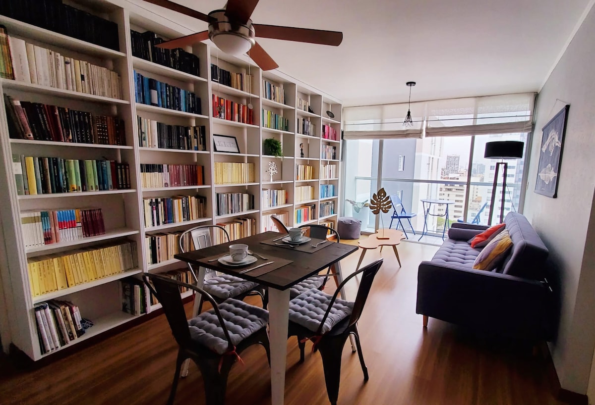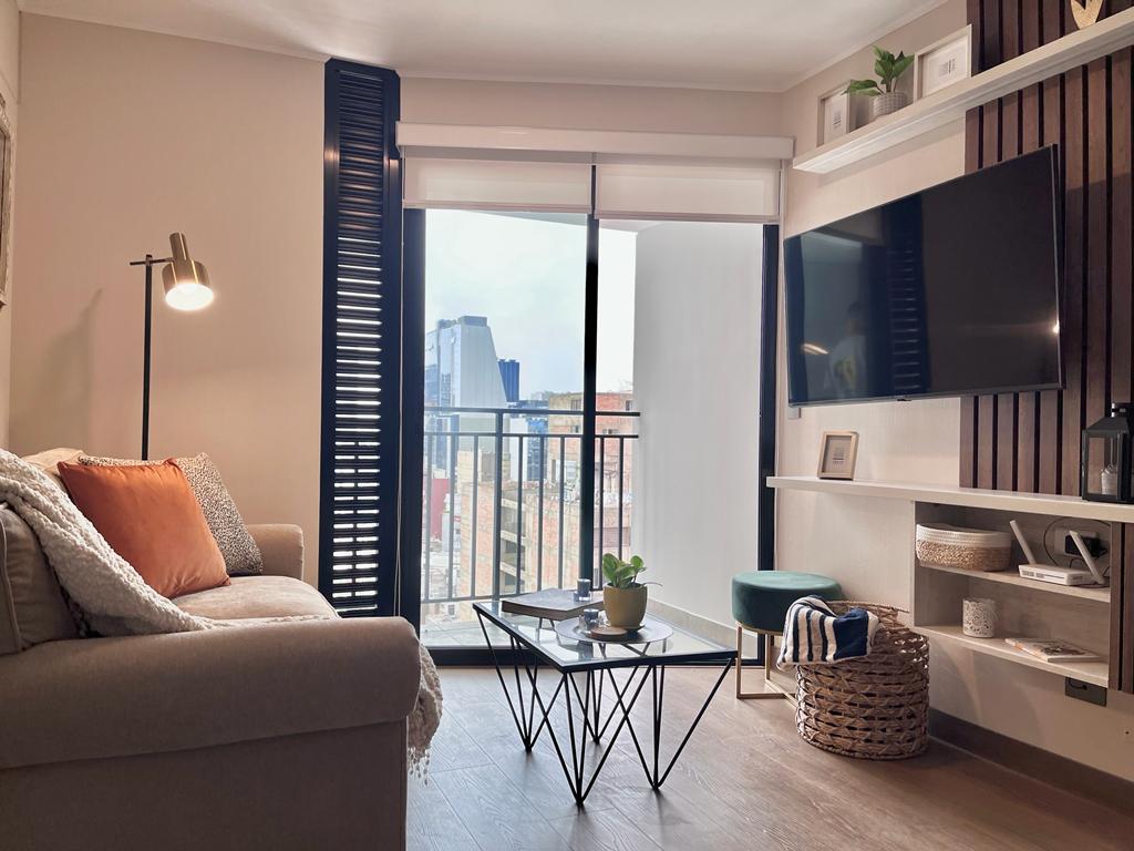 Enjoy a stylish experience at this centrally-located condo in one of the most sought out neighborhoods in Lima: San Isidro. Located near shops, restaurants, hotels, and easy access to all major districts in Lima. Professionally decorated and styled to maximize guests comfort and experience. Located in the ninth floor , near pent house where all outdoor amenities are located ( outdoor grill!). 24/7 security with gated access. NEW!