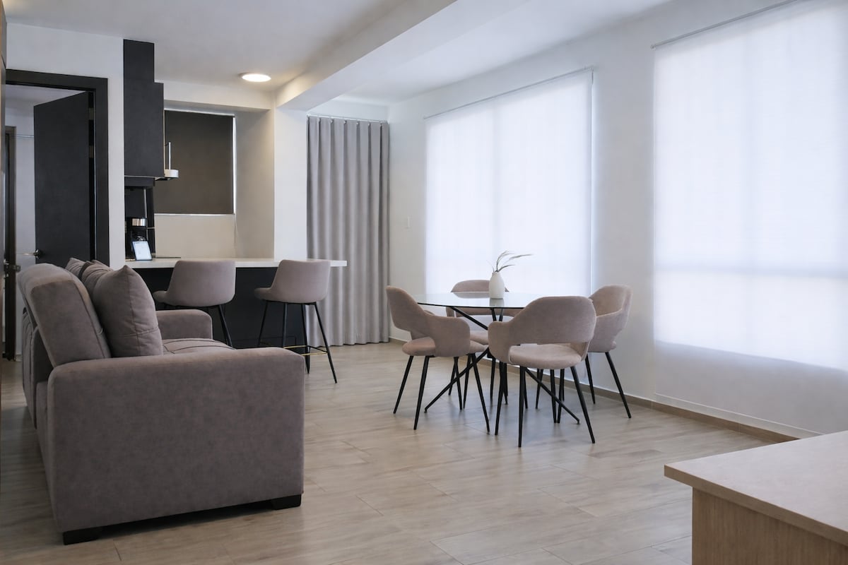 Ubicado en una zona privilegiada a pocos pasos de los mejores equipamientos de Manta, Coral apartment L’mare es el refugio perfecto para quienes buscan descanso y confort. Este acogedor apartamento de un dormitorio, con una amplia cama de 3 plazas y un elegante y cómodo sofá cama, es ideal para 4 personas o parejas con hijo/a. Cada rincón ha sido cuidadosamente amoblado y diseñado con dedicación, asegurando que nuestros huéspedes se sientan bienvenidos.
