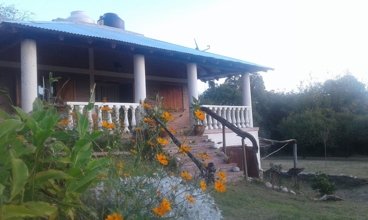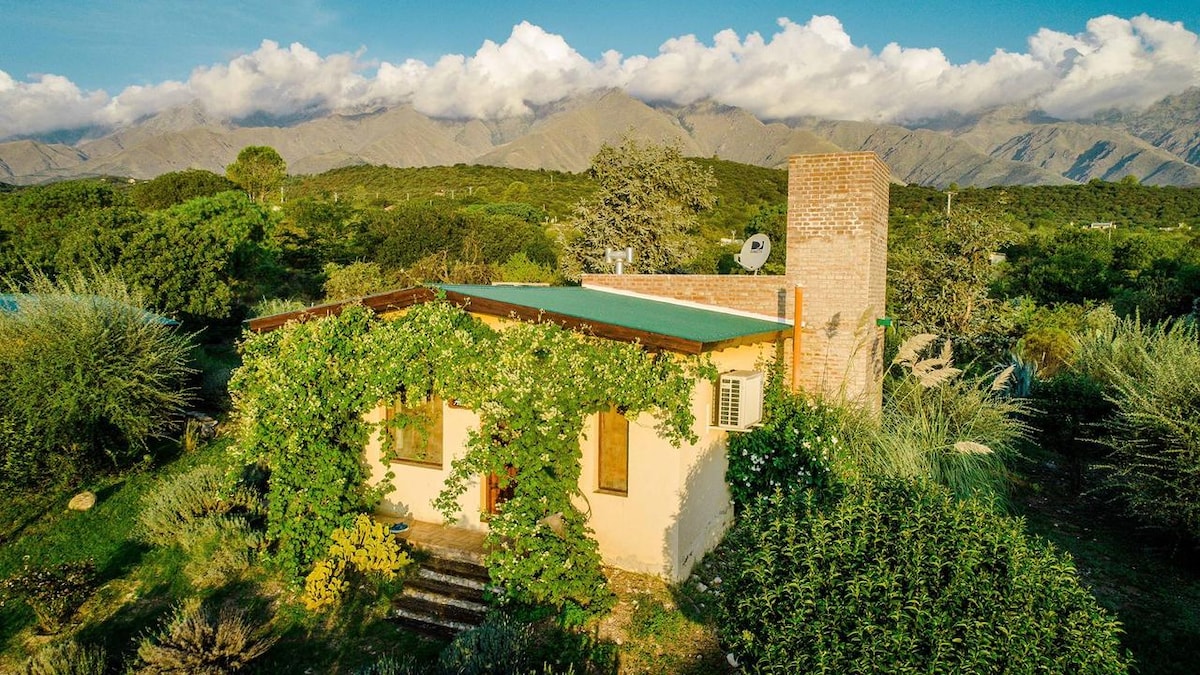 Cabaña al pie de las sierras con bajada propia al arroyo. Inmerso en el monte nativo rodeado de naturaleza. En el verano su mini piscina con vista a los cerros, su galería con asador y su gran jardín serán tu refugio. La salamandra te dará calor en invierno mientras disfrutas de la vista a los cerros nevados . La casita está pensada para que la privacidad sea lo más importante.