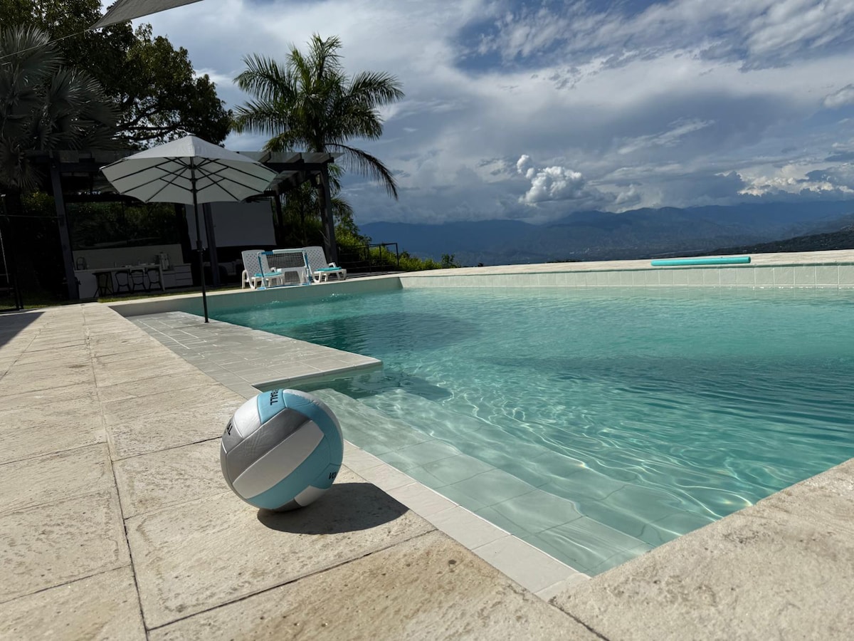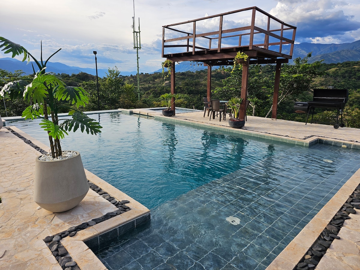 Welcome to our dream country house in San Jerónimo, Antioquia! Located just 5 kilometers from San Jerónimo's central park and 45 minutes from Medellín, with a fully paved road all the way. Our property is the perfect retreat for those seeking peace and a connection with nature, without straying too far from urban comforts. It features a spectacular private pool, panoramic mountain views, and lush green areas with relaxing spaces.