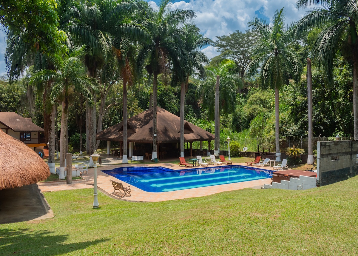 Hotel Campestre, con fácil acceso, Rodeado de Naturaleza, con espacios para disfrutar en pareja, familia o amigos. A Solo 35 minutos de la ciudad de Medellín. Cerca al Parque Principal de San Jerónimo. Tenemos Piscinas, Jacuzzis, Turco, Sauna, Canchas de Futbol, Basquet, Volley Playa, Lago, Parque de Mascotas, Juegos de Mesa, Billar, sala de TV, Hamacas y un delicioso restaurante con comida local y nacional.