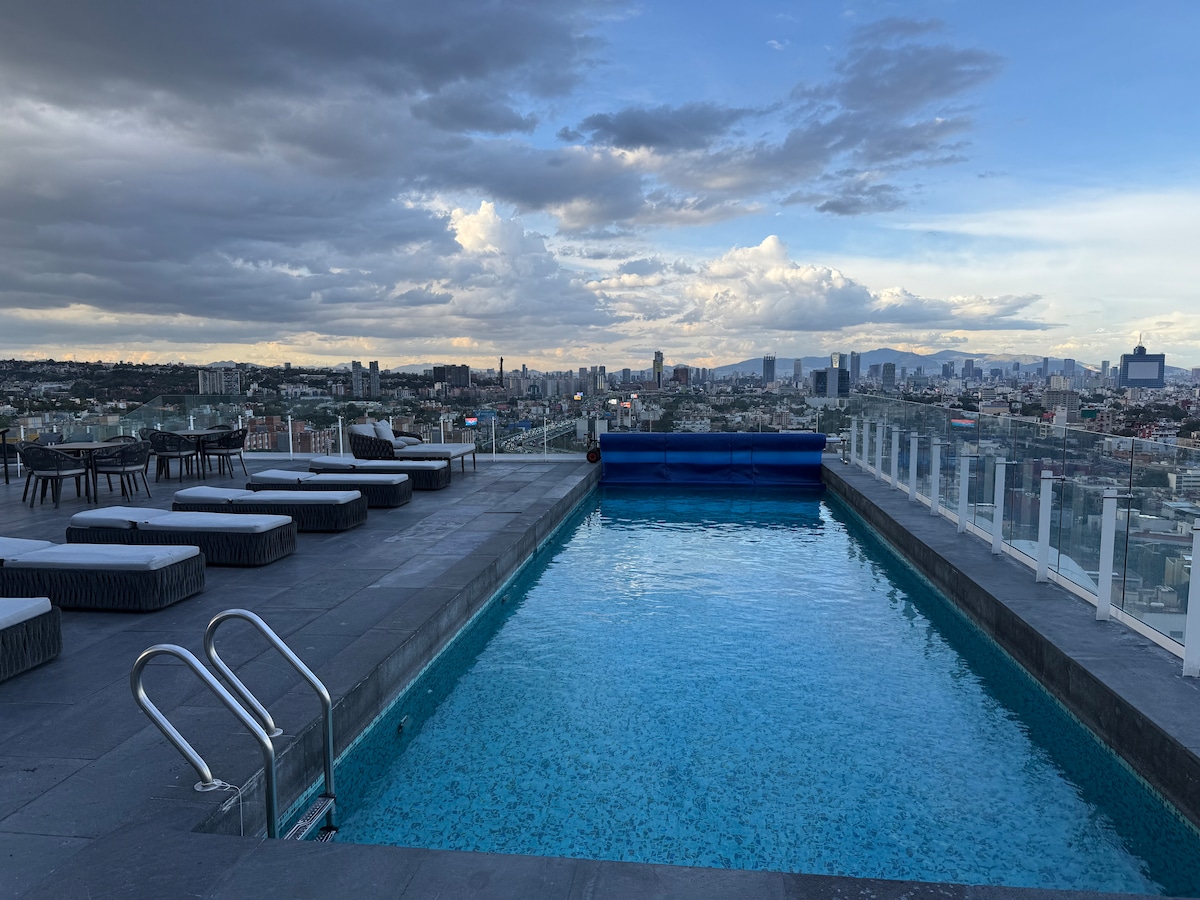 Enjoy an exclusive stay in this elegant luxury loft located in the 14th floor of a newly opened condominium in the south of Mexico City. Designed with top-quality finishes. Ideal for a single guest or a couple. * King-size bed * Modern living and dining area * Fully equipped kitchen with appliances, potable water filter, and Nespresso machine * Panoramic-view pool and jacuzzi * Sky lounge * Gym with yoga room * Kids’ playroom * 24/7 security and private parking space