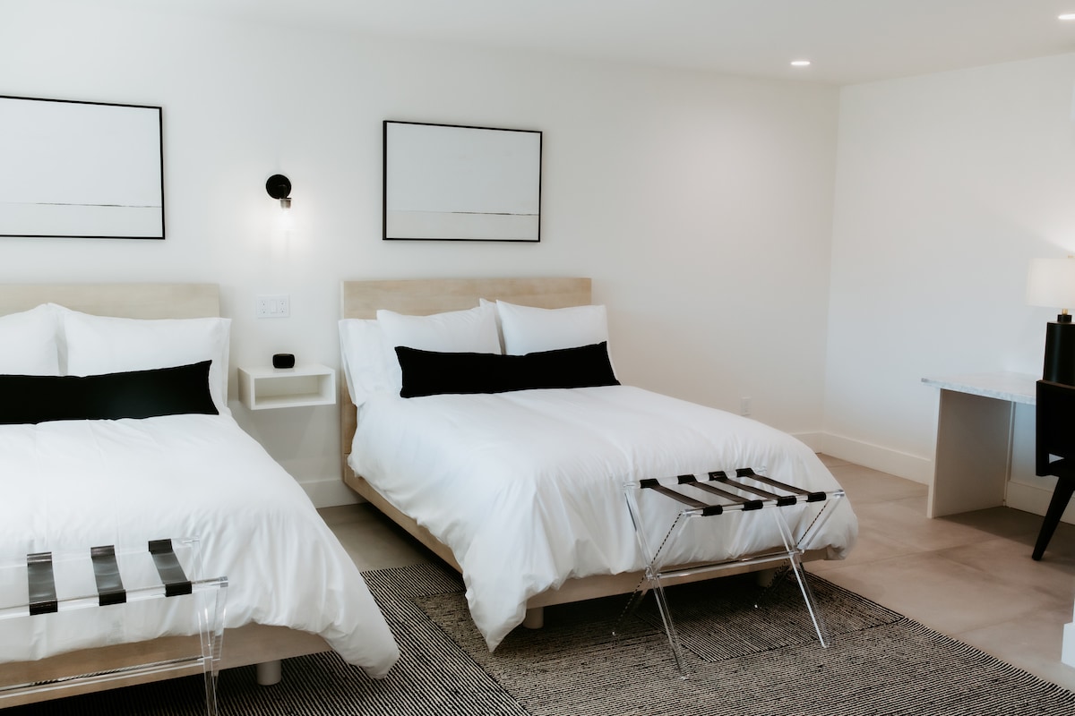 Experience our Double Room featuring two comfortable double beds and contemporary decor. Refresh in the sleek ensuite bathroom with a shower and premium toiletries, ensuring a luxurious stay.