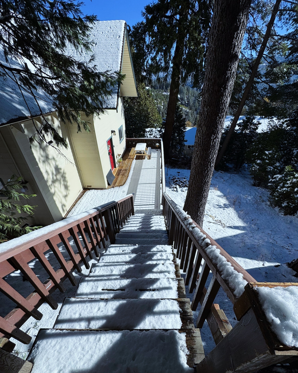 Enjoy this conveniently located condo that has been remodeled to give our guests a cozy cabin feel with the convenience of on-sight parking on the winter. Enjoy a wood burning fireplace after a day of fun in the snow. Star gaze on the deck on summer evenings. No detail has been spared in furnishing this space! You will be a few minutes walk to the Bear Valley Lodge, restaurants, ski shuttle up to the mountain or to the infamous Bear Valley Music Festival in the summer.