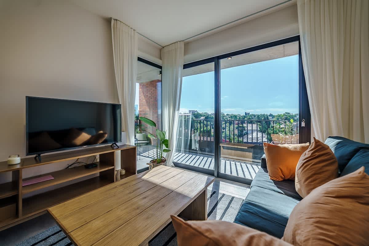 A home where art tells its own stories. At Jaguareté Art Stay, every piece of Paraguayan art adds a unique touch to the experience. The space was designed to feel good: bright, serene, and thoughtfully curated. Located on a high floor with open views and a strategic location, it offers the perfect balance between connection and tranquility. A place to rest, get inspired, and experience the city from a different perspective.