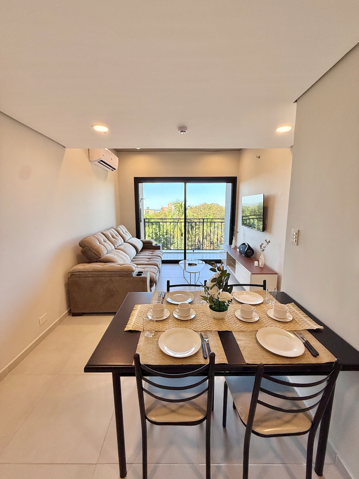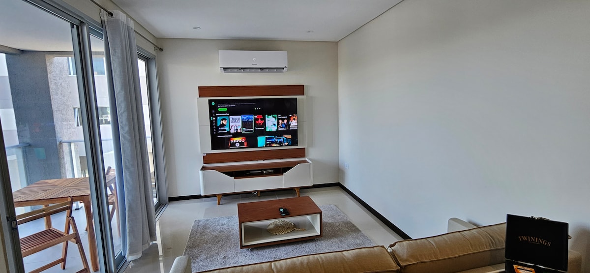 Relájate y recarga energías en este ocio de tranquilidad y elegancia. Departamento moderno en una zona privilegiada a pocos pasos del shopping del Sol en el eje corporativo de Asunción. Tiene todos los servicios, como Smart TV, WiFi, ropa de cama, cocina totalmente equipada, amplio balcón, cerradura electrónica portería las 24 hs gimnasio equipado, lava/secaropa, terraza con vistas a Asunción, parrillero al aire libre y salon climatizado, piscina, sala de cinema, centro de negocios y mucho más.