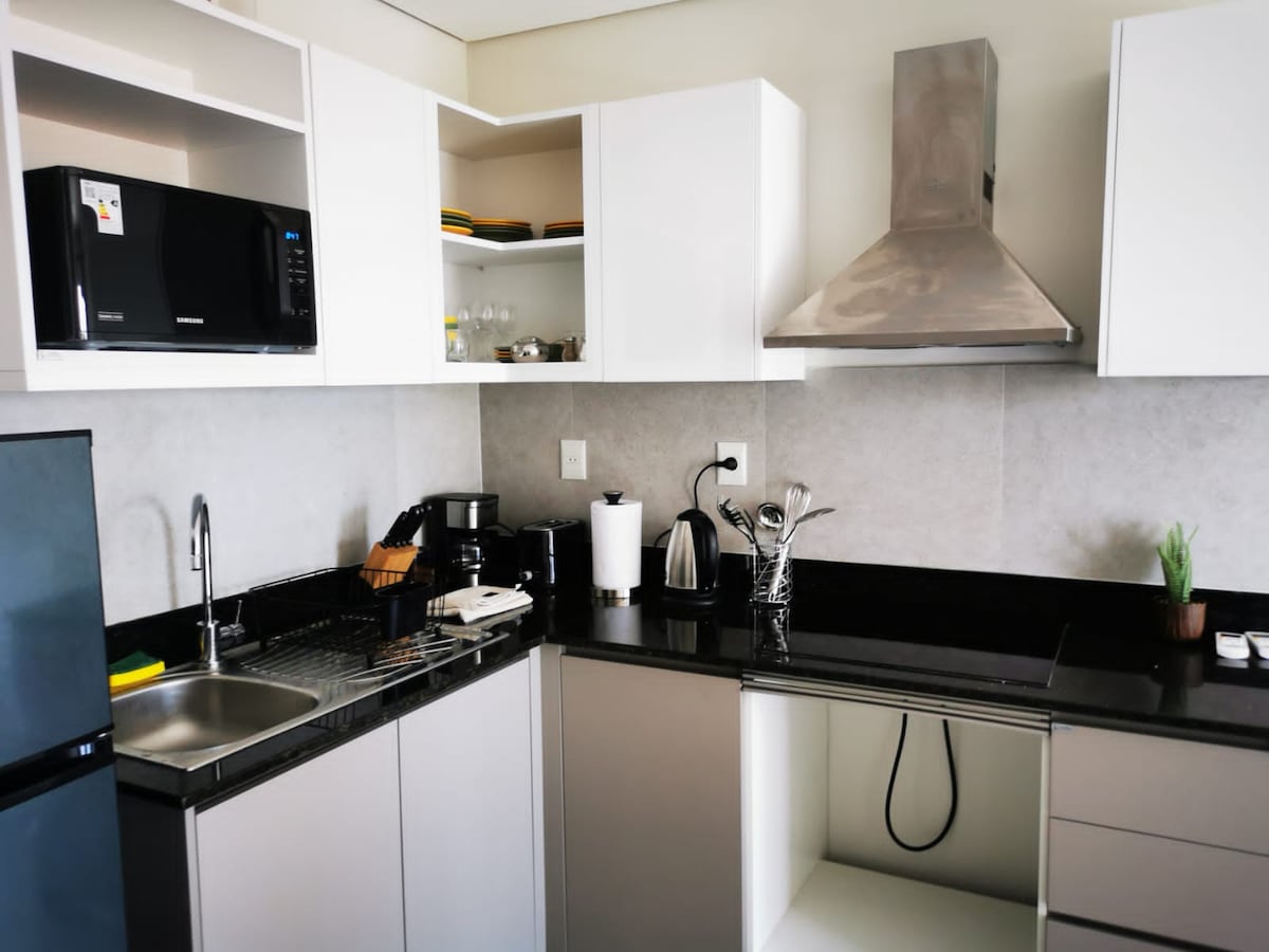 Nuestro apartamento cuenta con un ambiente moderno y acogedor. Cocina totalmente equipada, con electrodomésticos y utensilios esenciales. Wifi de alta velocidad en todo el apartamento. Cocina totalmente equipada para preparaciones de comidas convenientes. Check-in sin complicaciones para tu comodidad. Disfruta de toallas y productos de higiene personal de cortesía para mayor comodidad. Cochera techada. 200Mts de los mejores Shoppings. 10 Min del aeropuerto.