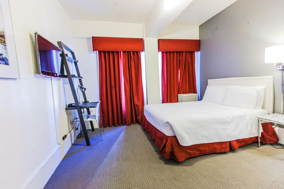带阳台的单卧室特大床套房!全功能厨房!