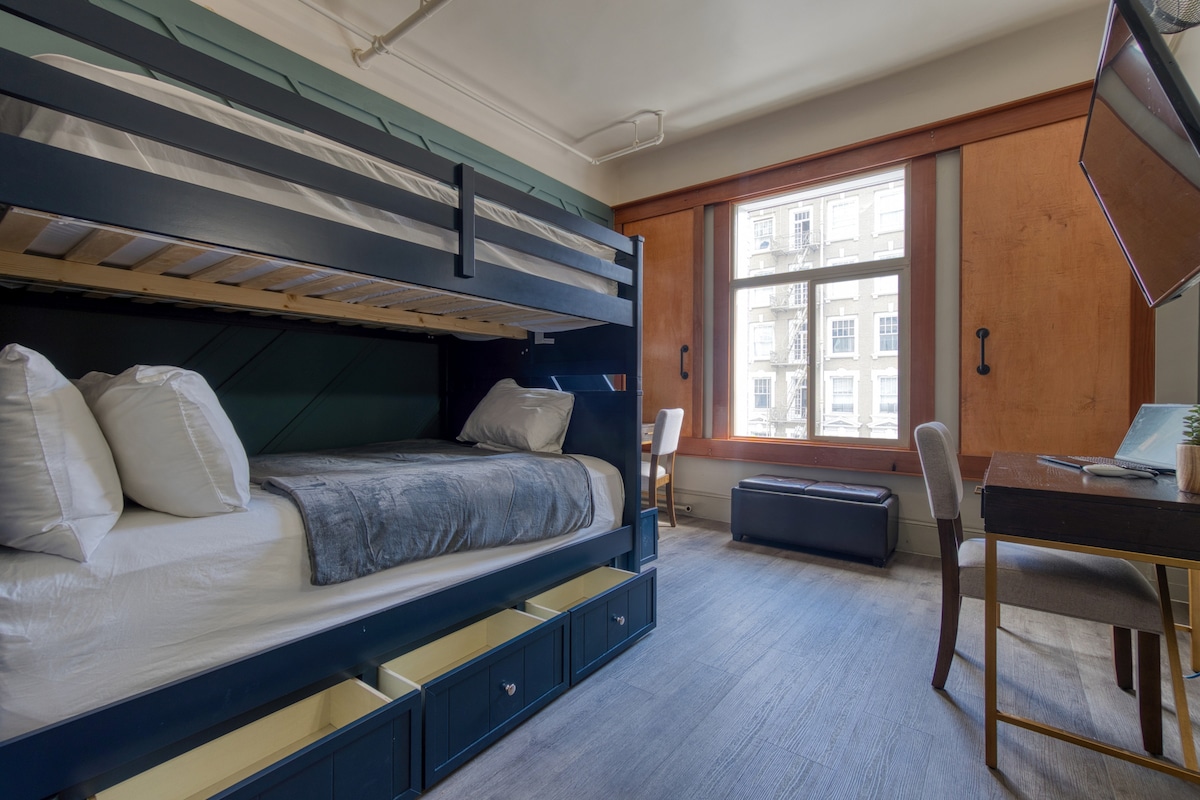 Our sunlit, second-floor Two Twin room is a restful retreat after a long day exploring San Francisco. Complete with modern amenities--like WiFi and a flatscreen TV, comfortable furnishings and curated art, we've ensured our guests have what they need to make the most of their visit.