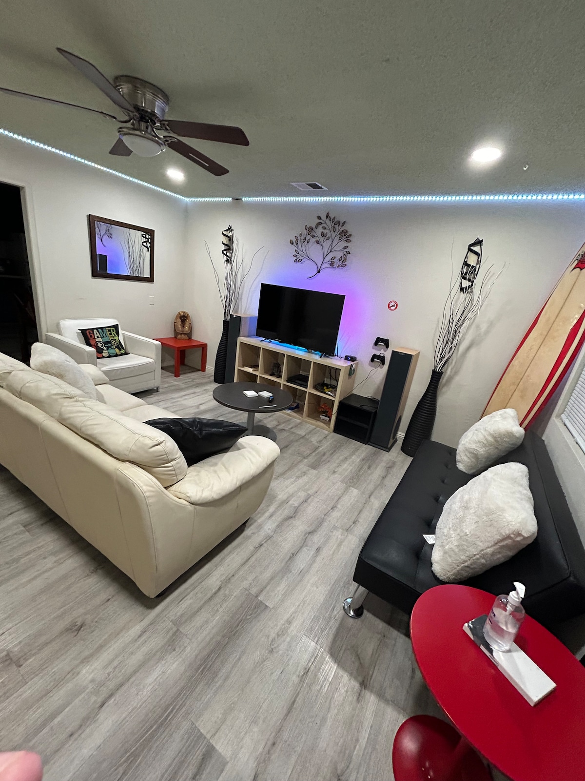 This stylish private home is perfect for visiting and working close to downtown San Jose . There is large living room and a kitchen. There is pool table and workout area in the garage. Beautiful ambience LED lights in the living room and Game/ GYM Room. Centrally Located close to San Jose downtown , Tech companies (Silicon Valley), Levi's Stadium, Concert Arenas, San Jose State University, San Jose Airport, Amusement Parks, Many late night taco stands that you can walk to. Tesla EV Charging.