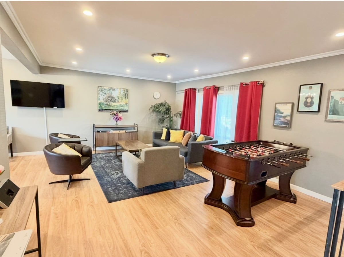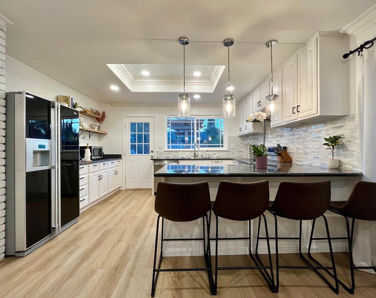 Relax and spend quality time in our newly remodeled modern farmhouse, while also being close to parks, shopping, and many food options. Inside comes with high-quality furniture to ensure that you rest comfortably. The open spacious kitchen is well stocked so that you can cook and enjoy your meals all together. Come outside to the backyard to bbq, and play a few games of ping pong, arcade basketball or foosball. The comfort of home and the luxury of a vacation are both here to welcome you.