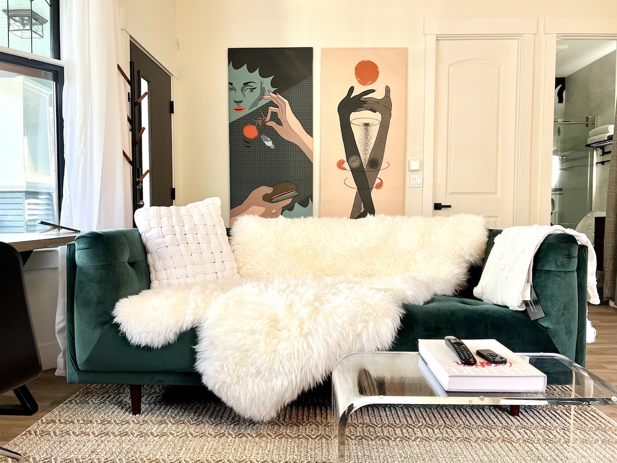 Close to all the action downtown San Jose has to offer, our renovated suite was designed with beauty and comfort in mind. You'll have a private entrance and a front porch all to yourself. This modern/luxurious home features a large living room/dining/kitchen/work area combo, dramatic bay windows, a textured stone wall fireplace, modern amenities, a cozy bedroom, specially commissioned artwork, laundry, and spa-like bathroom - a home away from home.