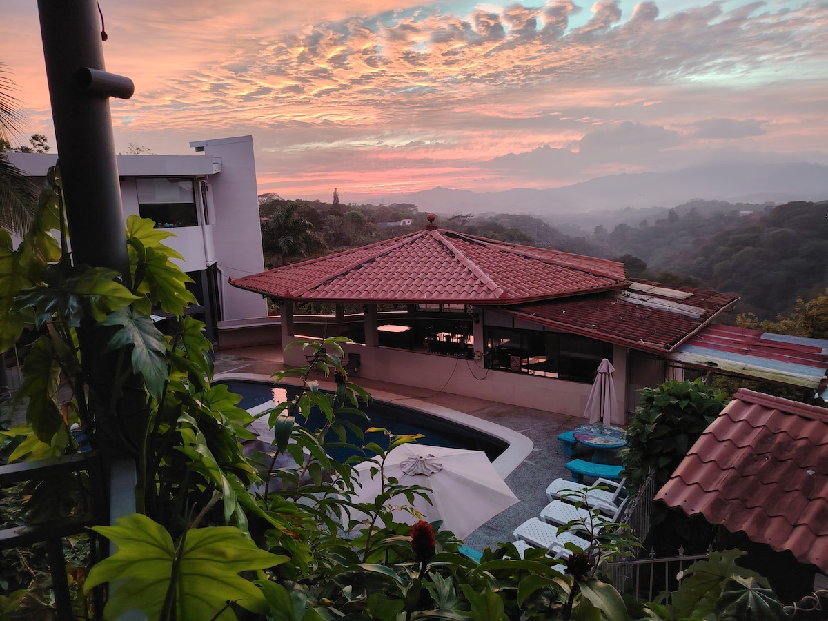 A place to enjoy a peaceful stay with comfort. Beautiful villa with everything necessary to spend a weekend or a month, full of gardens, birds, fire pits near the city but away from it. Comfortable bed, top of the line accessories, internet and sunsets to remember. Activities near by such as Barva Volcano National Park, Coffee Britt tour and an adventure park 2 kms away