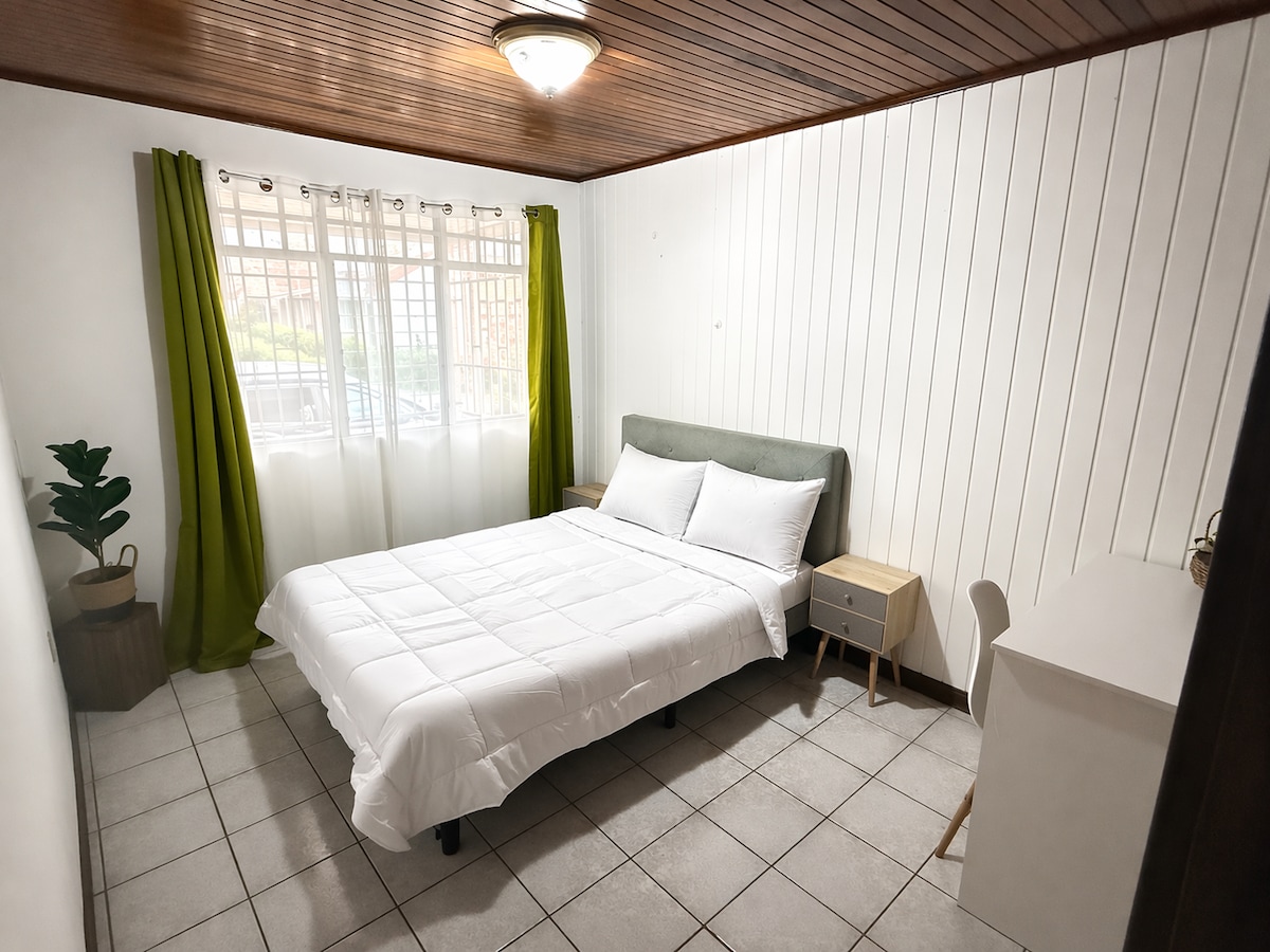 Cozy and well-located apartment near the airport and downtown San José, ideal for travelers to explore the city with comfort and convenience. Minutes from Hospital Mexico, with easy access to points of interest such as La Sabana Park, Museum of Costa Rican Art, and the National Stadium. The room is of integrated open space, studio type: -Queen Bed -Air conditioning -TV -WIFI -Fully equipped kitchen -Outdoor terrace
