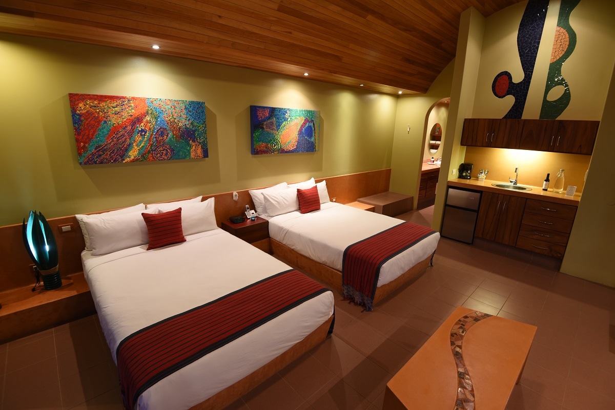 Enjoy a peaceful night in our spacious room with a comfortable queen-sized bed, set within a charming eco-friendly hotel powered by solar energy and inspired by traditional Costa Rican hospitality. After a peaceful night, wake up to a delightful morning with our buffet breakfast (extra fee), prepared with fresh, organic, and locally sourced ingredients. Every dish is handmade with care and love to give you the perfect start to your day. Come experience the true essence of Costa Rica with us!