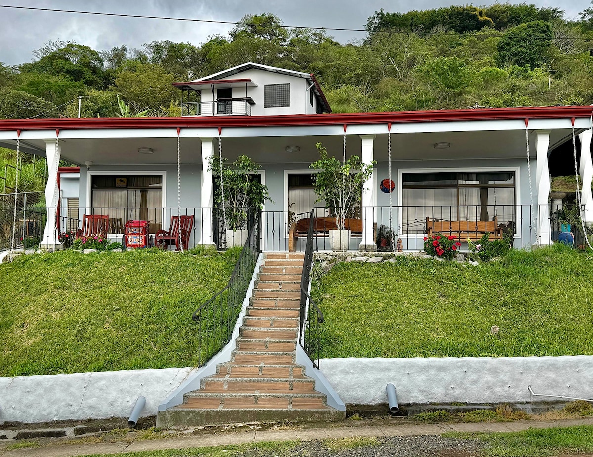 Our home is in Alajuela, in a calm neighborhood just minutes from Juan Santamaría International Airport and close to local attractions. We offer 5 rooms (3 with private bathrooms, one of them with a single bed). The house has a garage for 2 regular cars and has 2 additional full bathrooms. Enjoy a fully equipped kitchen or relax on the hammock and enjoy the gardens, often visited by hummingbirds and butterflies. Check-in: 10am–10pm ($50 extra for after-hours check-in) Parking height: 2m/6.5ft