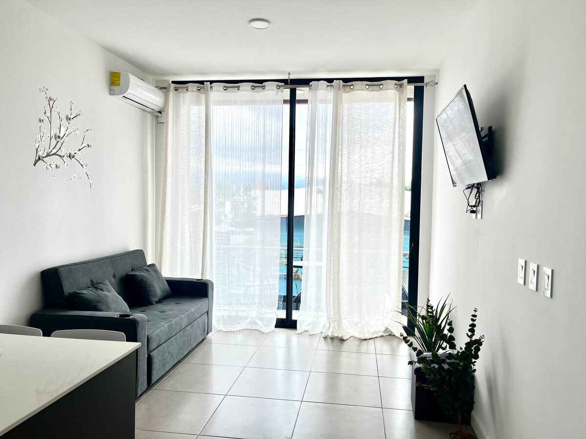 ? Stunning & Spacious 1BR/1BA Condo! Perfect for medical tourism, remote work, business, or family stays, in the most exclusive area of Escazú! Enjoy breathtaking Central Valley & mountain views ?, just minutes from Multiplaza Mall, top dining, pubs, shops & artisanal cafés. ? Private parking, 24/7 security, elevator & stairs. Plus, relax with a pool, gym & lightning-fast 100Mbps WiFi! ??♂️? Cozy comfort & convenience—experience it all and leave your journey with us !- AC in master BR ✨